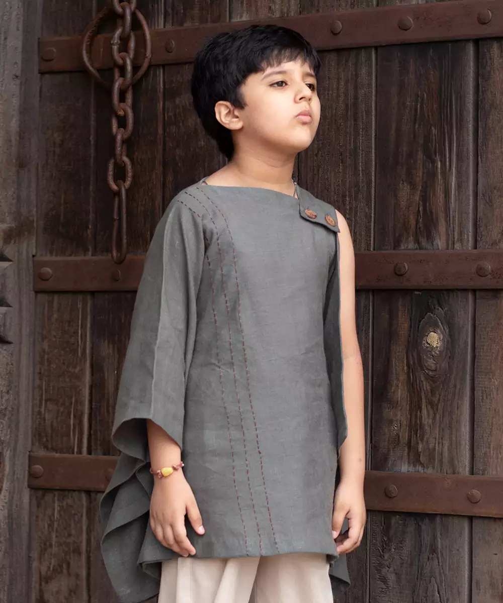 Featuring A Basil Green Top In Linen Base With A Kaftan Sleeve, Wooden Buttons, And Kantha Embroidery. This Contains Only One Piece.