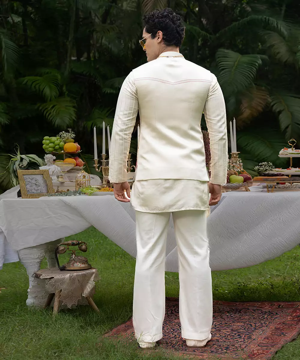 Ivory Printed Linen Kurta Jacket Set