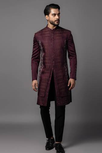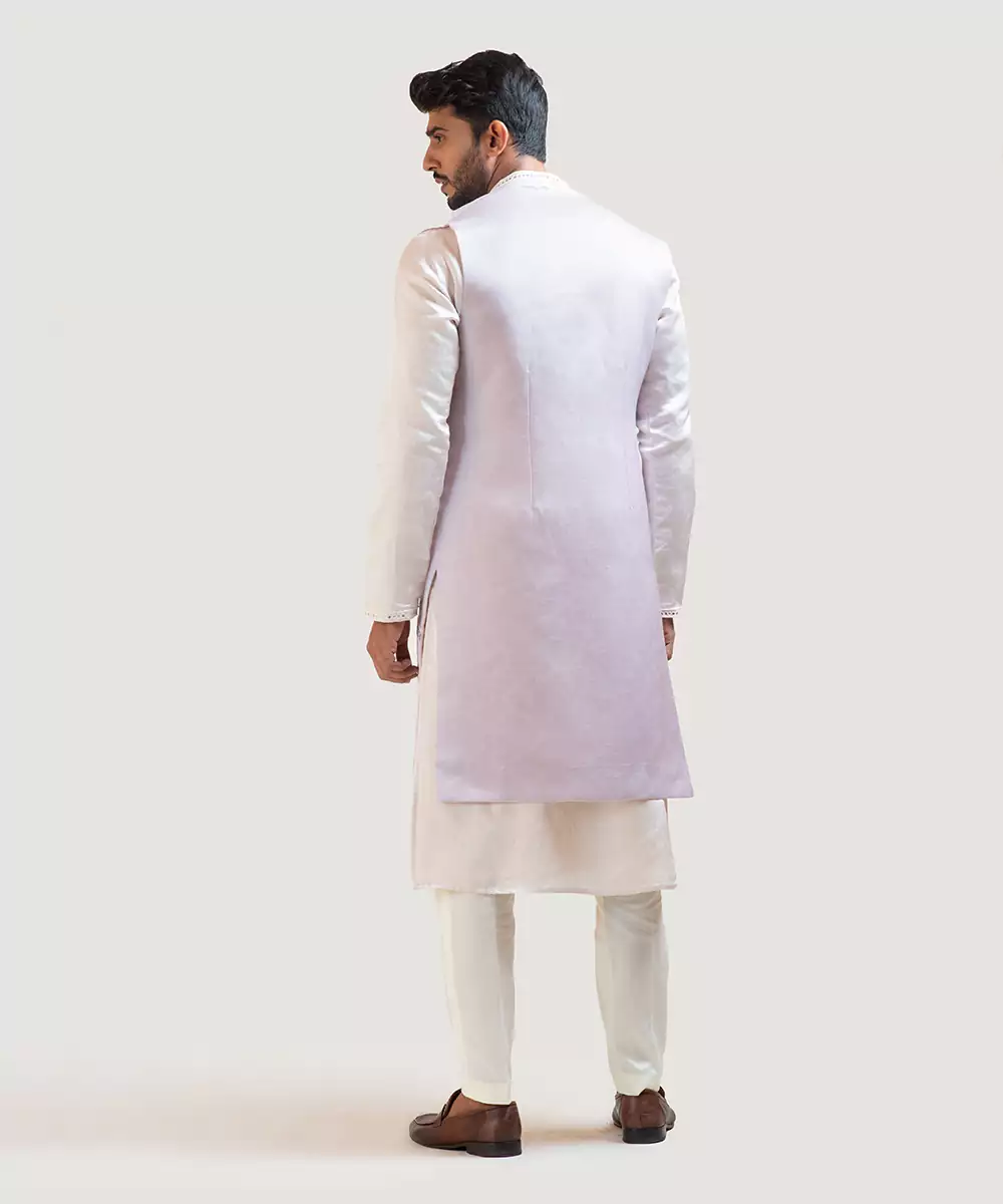 Lilac Long Nehru Highlighted With Mirror Work Motiff, Pearl Sequins And Chir Embroidery