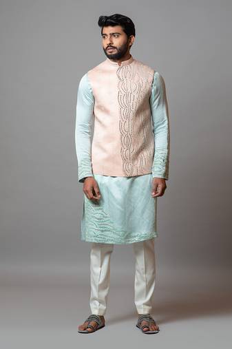 Nehru Jacket With Honeycomb Pattern Embroidery Highlighted With Panel Detailing.