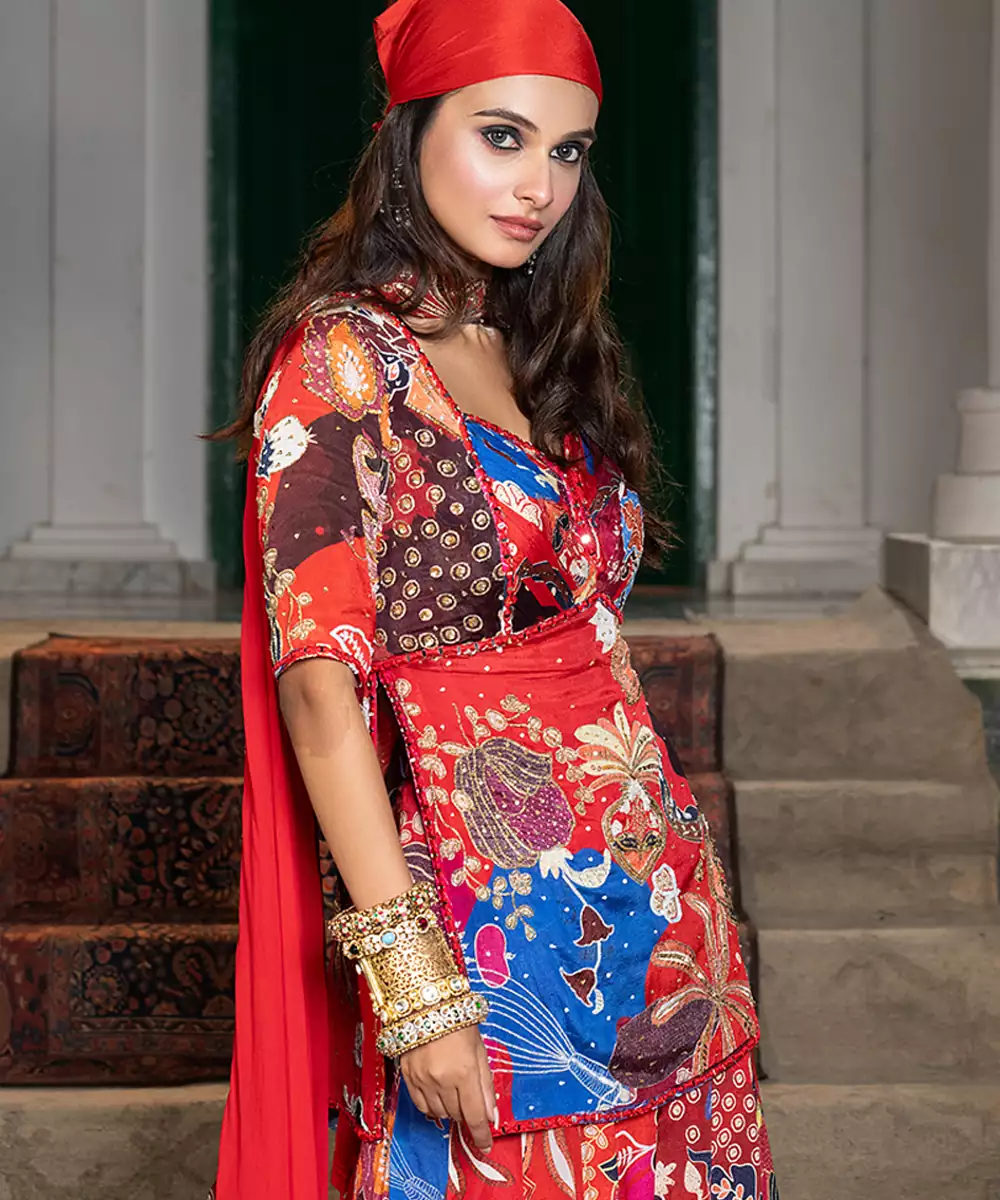 Components: 1 Kurta / 1 Sharara Pant / 1 Dupatta