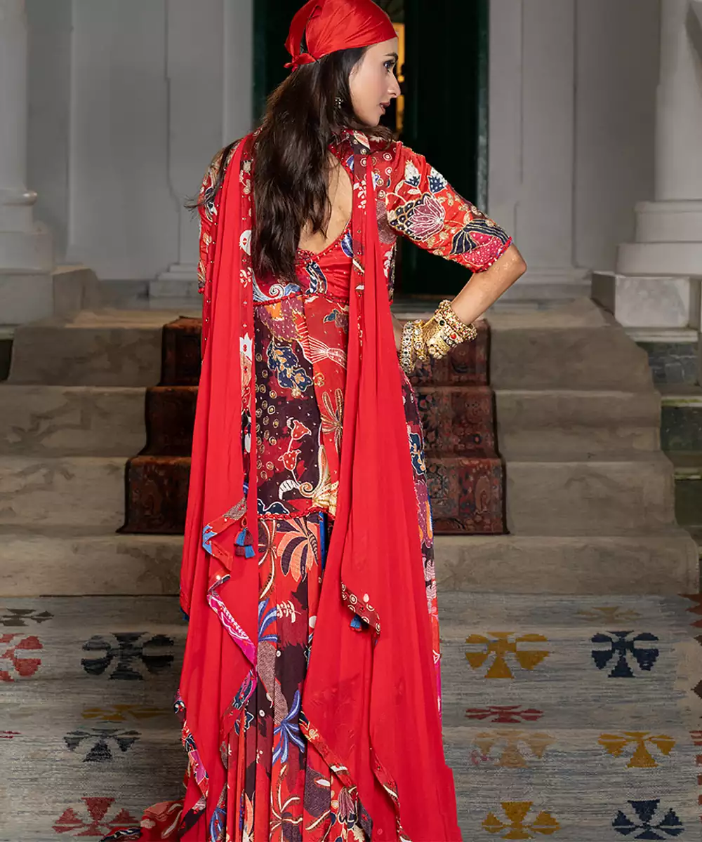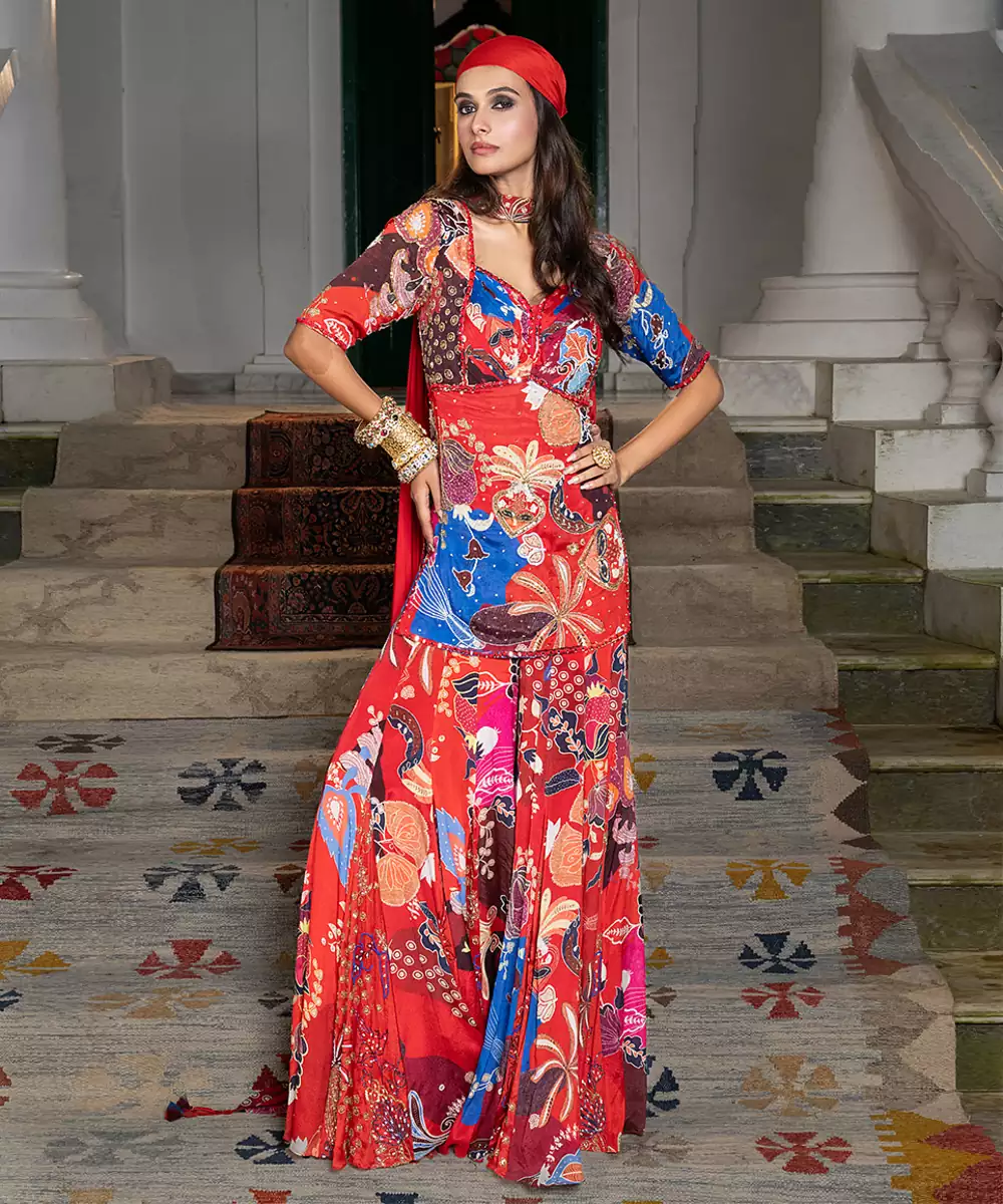 This Red Printed Viscose Sharara Set Showcases Vibrant Patterns That Enhance Its Festive Charm. The Soft Viscose Fabric Ensures Comfort While The Flared Sharara Adds Graceful Movement. Paired With A Coordinated Kurta And Dupatta, This Ensemble Is Perfect For Cultural Gatherings, Festive Celebrations, And Special Occasions With A Stylish Ethnic Appeal.
