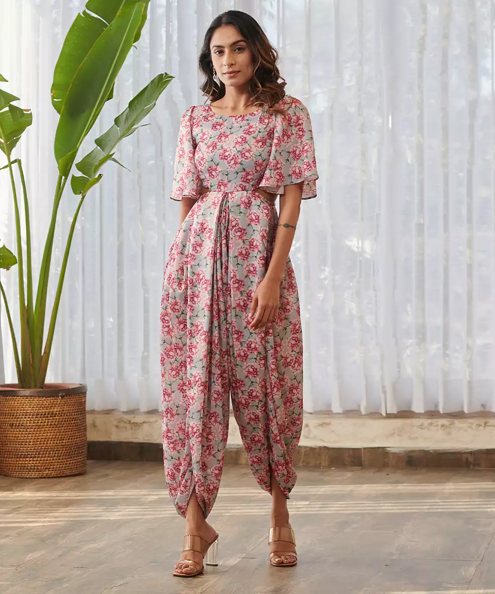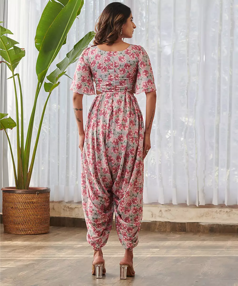 Grey Printed Swiss Satin Jumpsuit