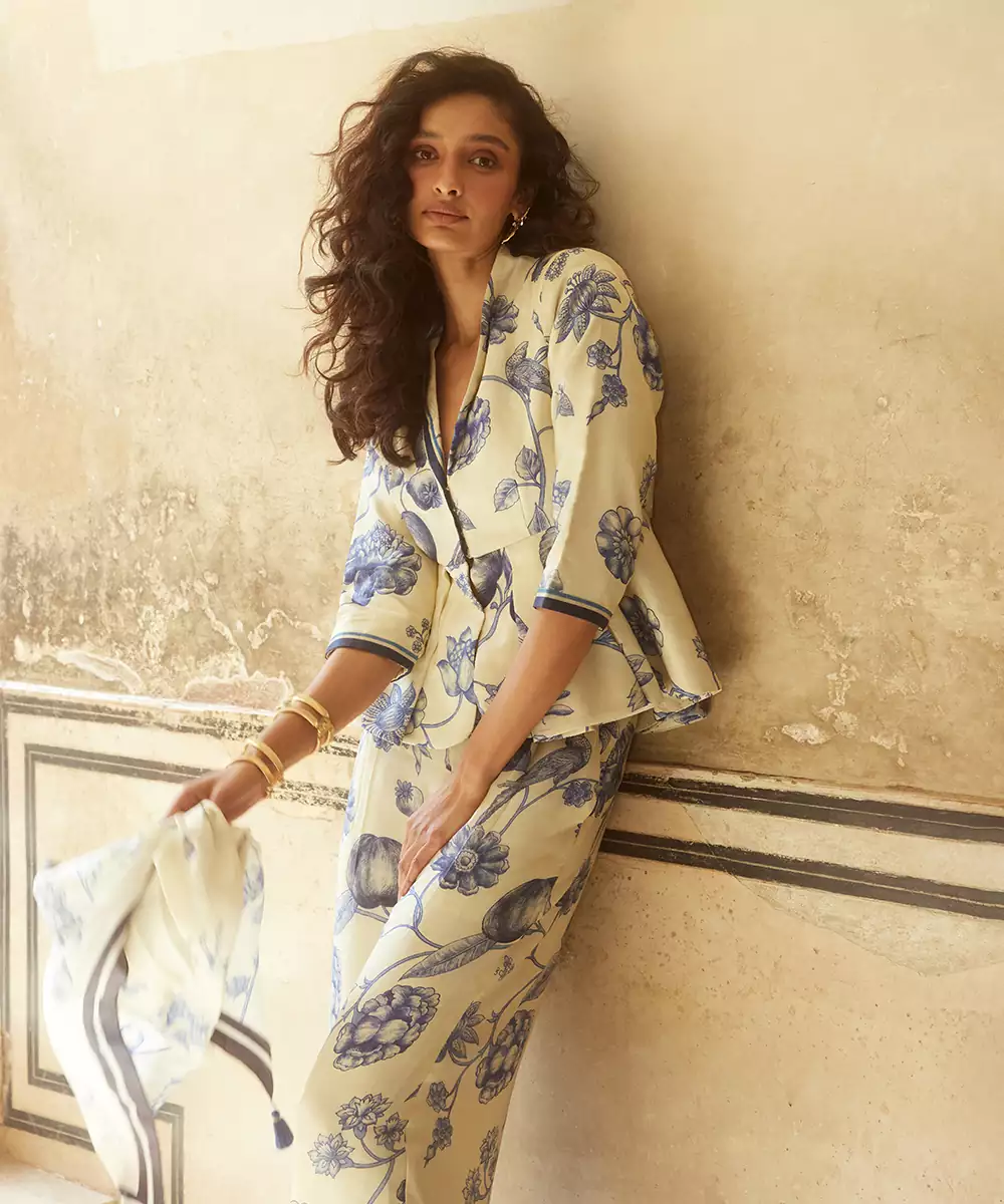 Featuring A Go Gracefully Chic To Your Next Brunch Invite Dressed In This Peplum Co Ord Set, Crafted From High Quality Habutai Silk In A Captivating Print.
