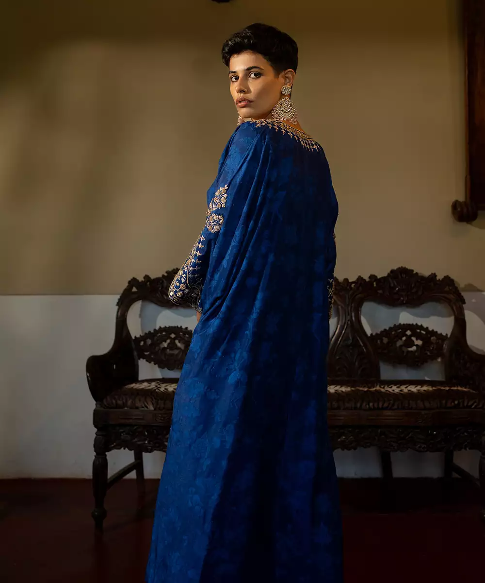 Fabric & Design: This Stunning Royal Blue Kaftan Is Crafted From High Quality Russian Jacquard, Known For Its Luxurious Texture And Durability. The Self Woven Fabric Features Exquisite Embroidery On The Yoke And Cuffs. The Kurta Features A V Neck And Three Quarter Sleeves That Look Perfect For Summers.