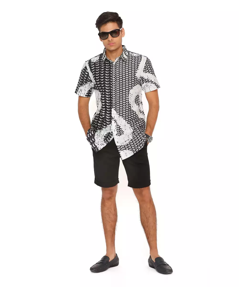 Black And White Uzbek Print Silkmul Shirt. Disclaimer : Since We Are A Made To Measure Brand And Our Dyeing Process And Embroidery Is Handcrafted, There May Be Slight Variation In The Colour And Embroidery Of The Actual Product.The Color Of The Outfit Might Also Slightly Vary From What You See On Your Device's Screen. The Print Placement May Also Vary From What Is Represented In The Images Shown On The Product Page.