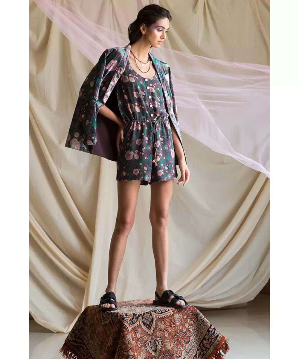 Brown Abutilon Print Velvet Jacket.