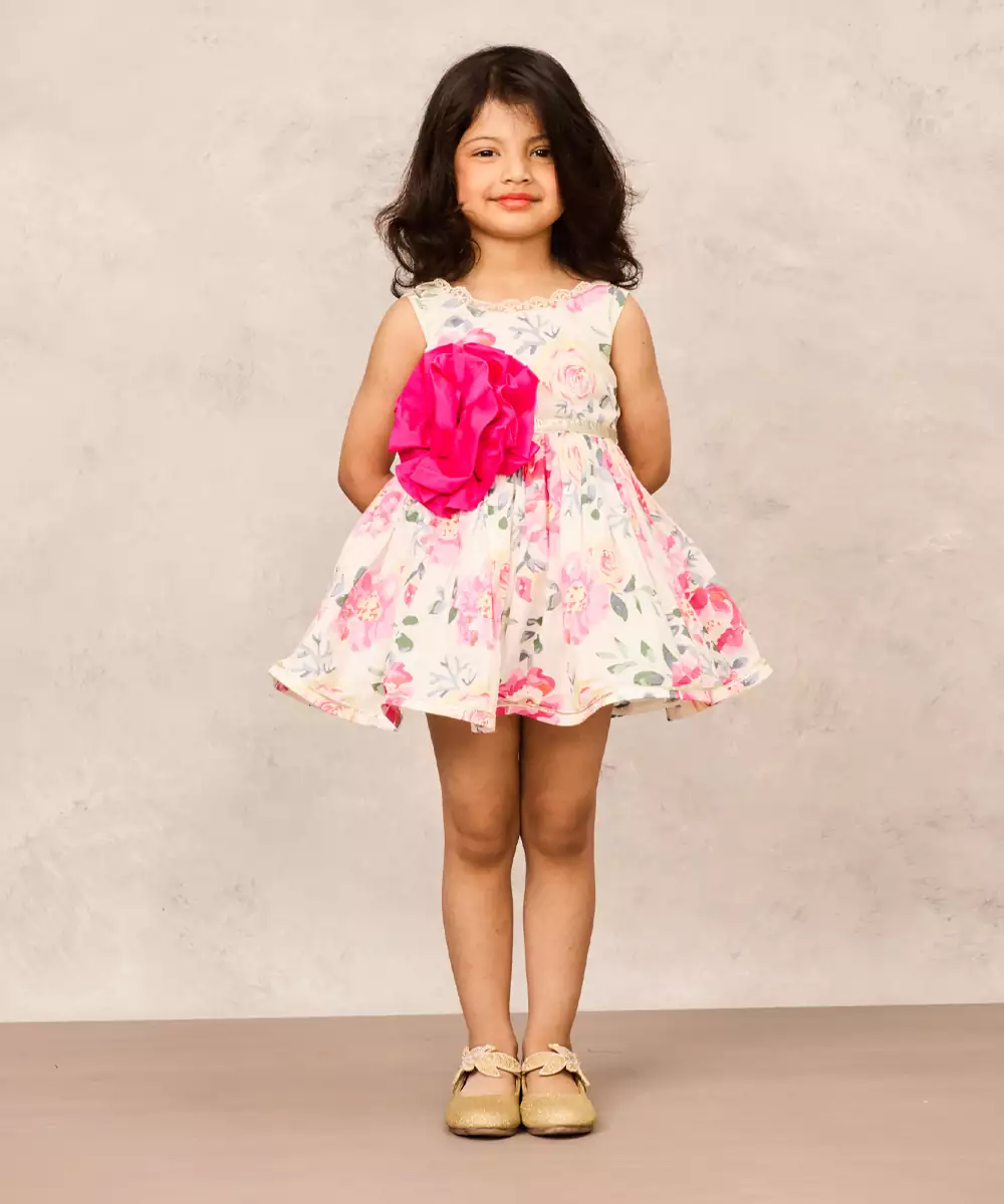 Featuring A Stunning Big Pink Taffeta Flower. Made From High Quality, Breathable Cotton, This Dress Offers A Soft, Lightweight Feel, Making It Ideal For Warmer Weather And Outdoor Events. The Bold, Oversized Pink Taffeta Flower Adds A Vibrant Pop Of Color, Creating A Chic, Feminine Look That’s Perfect For Any Occasion.