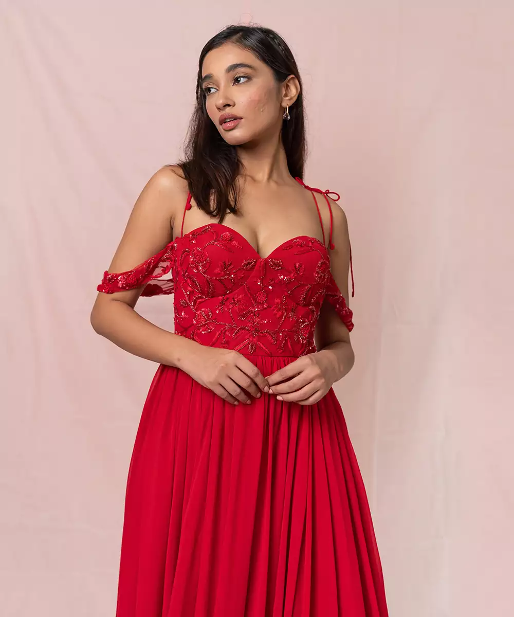 Featuring Red Hand Embroidered Gown.