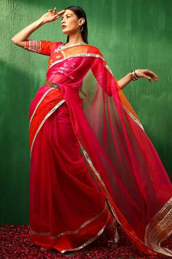 A Beautiful Collection Adorning The Femininity And Grace Of A Women. This Collection Is Dedicated To The Grace & Modesty Of A Women. Containing Phenomenal Sarees, Suit Set & Lehenga. Fabric : Organza Blouse : Cotton Size : 6.5 Meter Blouse : 1 Meter Unstitched Blouse Piece