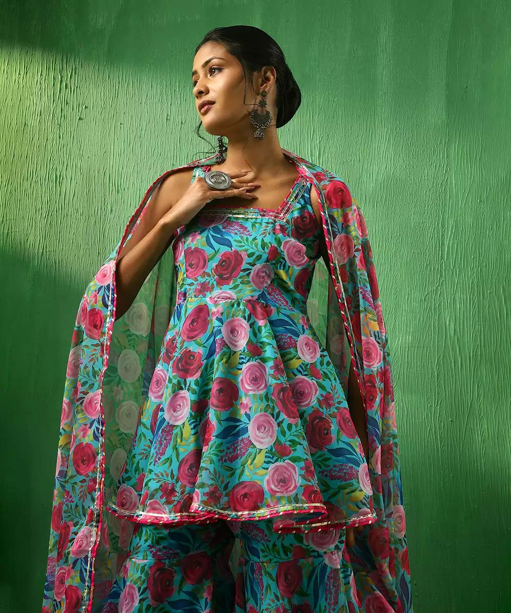 A Beautiful Collection Adorning The Femininity And Grace Of A Women. This Collection Is Dedicated To The Grace & Modesty Of A Women. Containing Phenomenal Sarees, Suit Set & Lehenga.Top: Organza Sharara: Organza Dupatta: Organza Sleeve Sleeveless No. Of Components : Set Of 3 Kurta Length : 30 Inches Pants Length: 38 Inches Length Of Dupatta: 2.50 Meters
