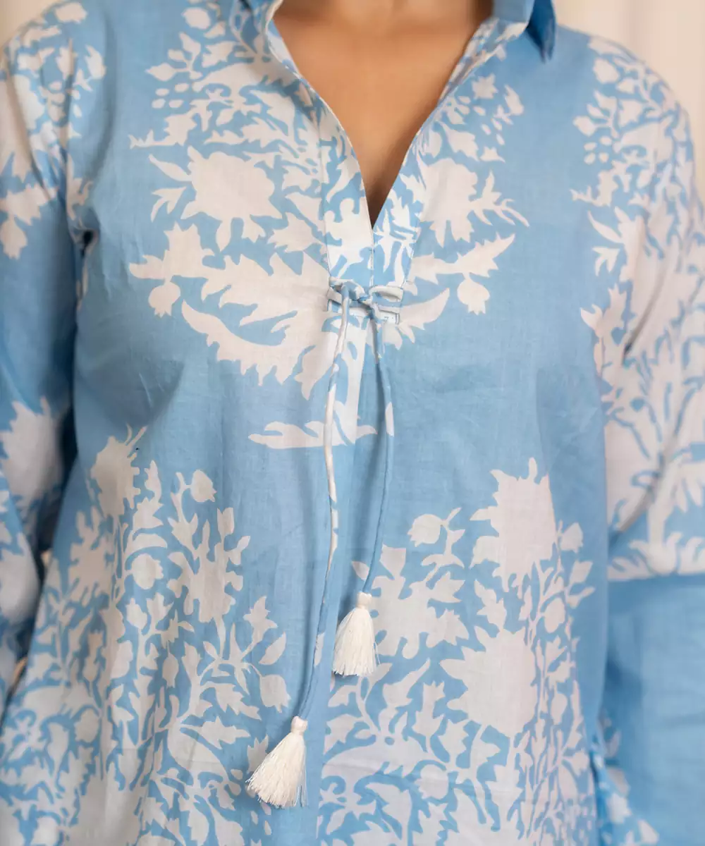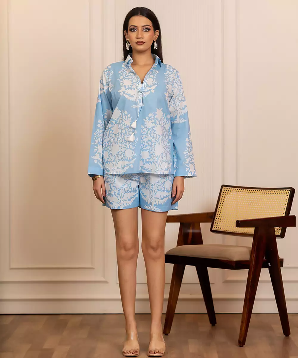 The Blue Printed Cotton Co Ord Set Showcases Attractive Prints On Lightweight Cotton Fabric For All Day Comfort. With A Coordinated Top And Bottom, It Is Ideal For Casual Outings, Festive Mornings, And Relaxed Social Gatherings, Offering A Stylish Yet Easy To Wear Ethnic Look.