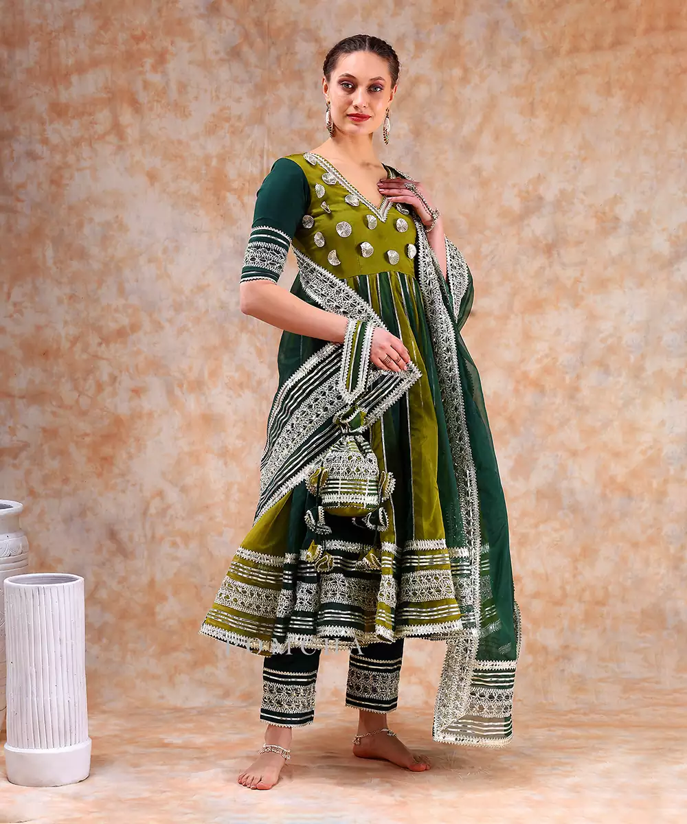 A Timeless Ethnic Wear Collection Ranging From Voluminous Lehengas To Adorable Anarkali, Companied With Elegant Suit Sets & Stylish Sarees. A Collection For The Phenomenal Women Out There To Embrace The Legacy Of Core Gotta & Lace Work. Anarkali: Organza Pants: Organza Lining: Cotton Sleeve Elbow Sleeve Dupatta: Organza No. Of Components : Set Of 3 Kurta Length : 48 Inches Pants Length: 38 Inches Length Of Dupatta: 2.50 Meters