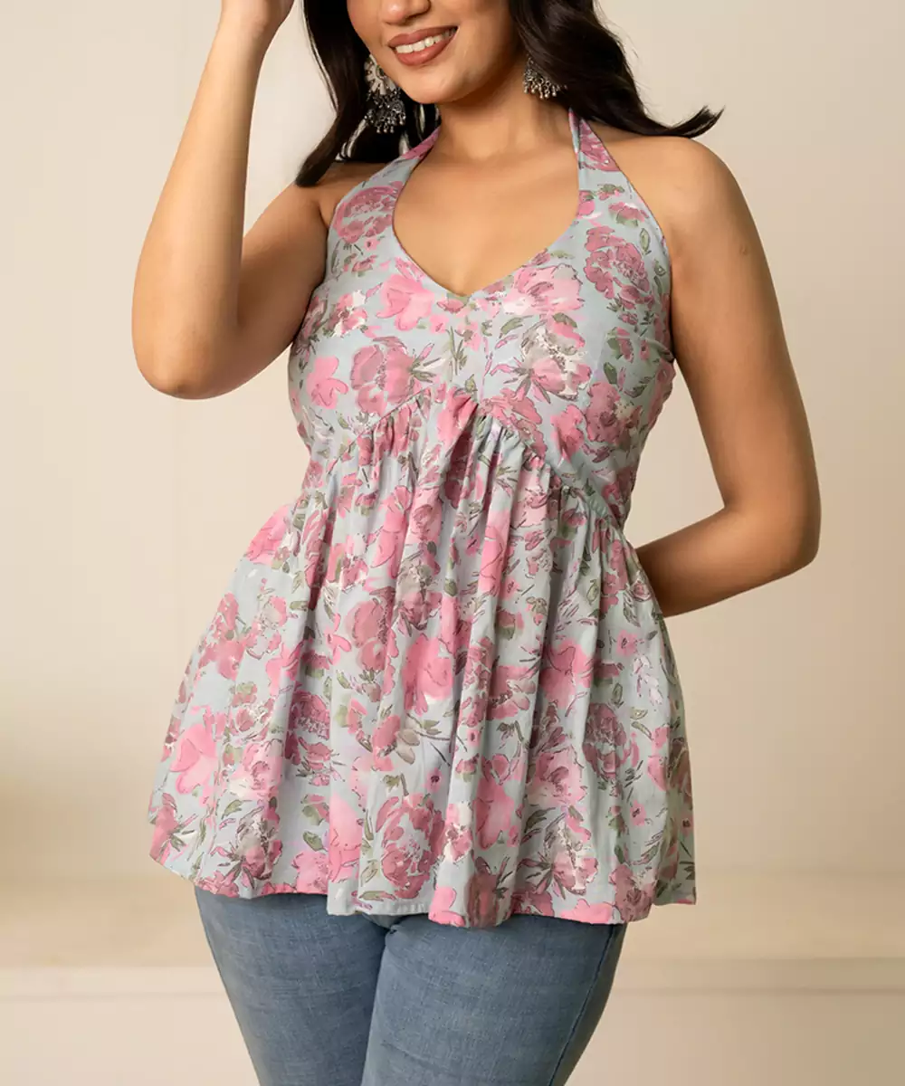 The Grey Printed Cotton Top Combines Neutral Tones With Elegant Prints For A Versatile Ethnic Look. Crafted From Breathable Cotton Fabric, It Ensures Comfort And Style For Casual Outings, Office Wear, And Festive Daytime Occasions.