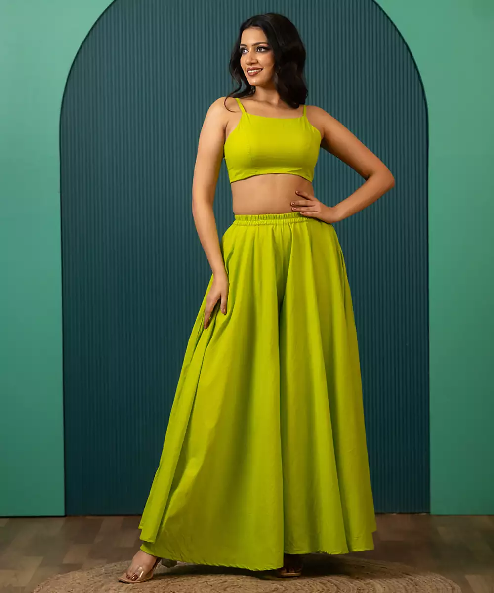 "This Lime Green Woven Cotton Co Ord Set Brings Together Refreshing Color And Traditional Woven Detailing On Soft, Breathable Cotton Fabric. Designed For Comfort And Effortless Style, The Coordinated Silhouette Is Perfect For Casual Outings, Festive Mornings, And Daytime Gatherings, Offering A Lively Yet Graceful Ethnic Look.