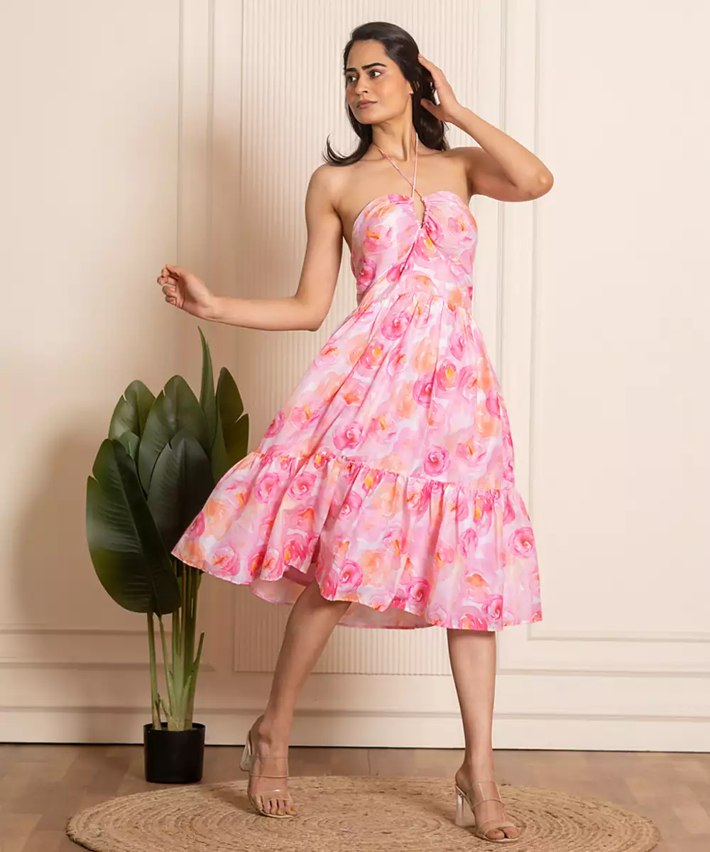 This Pink Printed Crepe Dress Showcases Soft Drape And Graceful Prints For A Feminine Look. Crafted From Lightweight Crepe Fabric, It Ensures Comfort And Flow. Perfect For Casual Outings, Brunch Dates, And Festive Daytime Wear With Effortless Elegance And Charm.