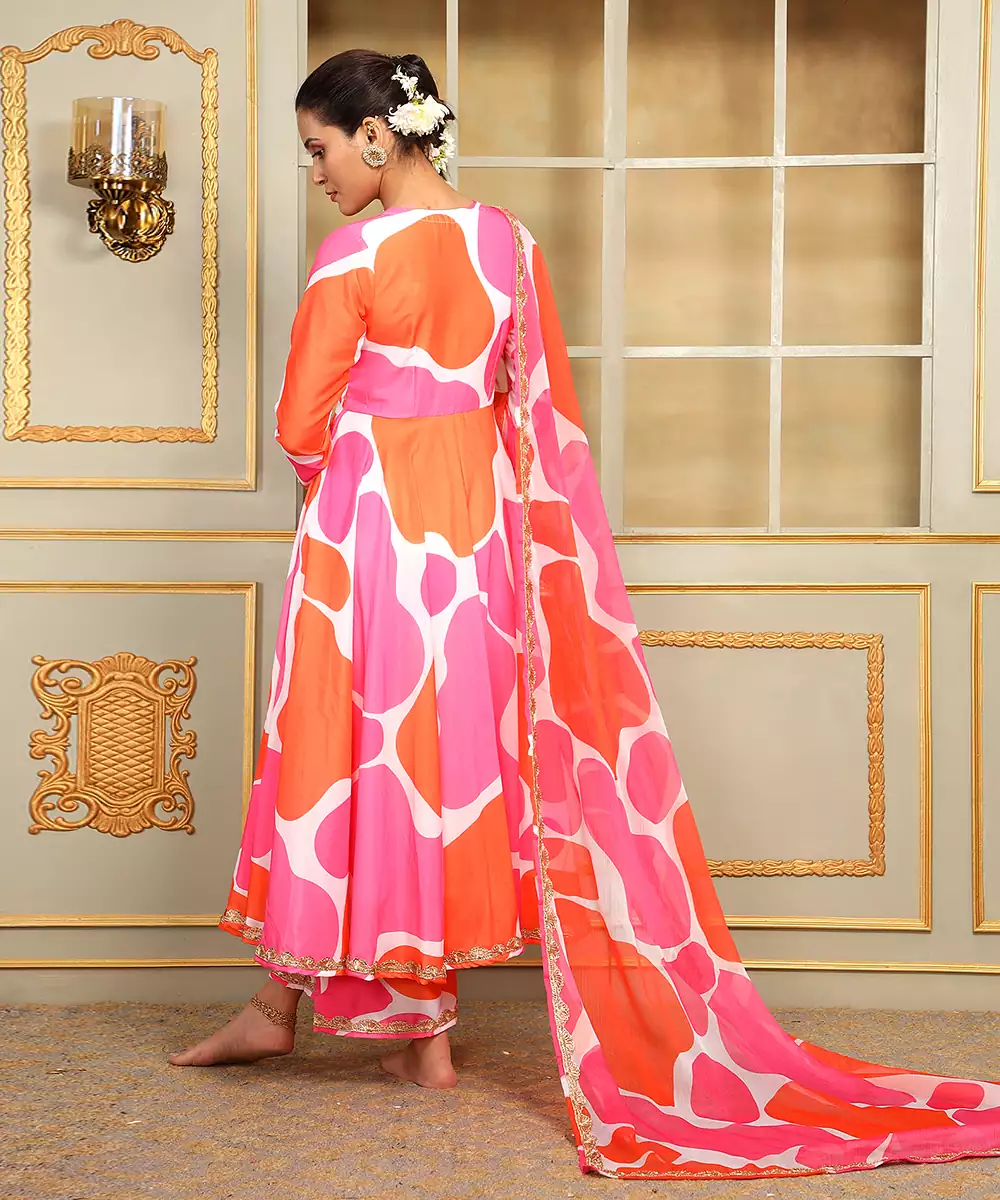 Saadgi A Collection For Today's Women For Everyday Wear, Outing Or Any Occasion Where You Want To Grace Your Presence With The Touch Of Ethnic Style. This Is A Beautiful Anarkali Set Embedded With Lace Work & Paired With Chiffon Dupatta. Kurta : Muslin, Pants: Muslin, Dupatta: Chiffon, No. Of Components : Set Of 3, Anarkali Length : 48 Inches, Pants Length: 38 Inches, Length Of Dupatta: 2.50 Meters, Neckline : V Neck, Sleeve : Full Sleeve, Stitched: Fully Stitched