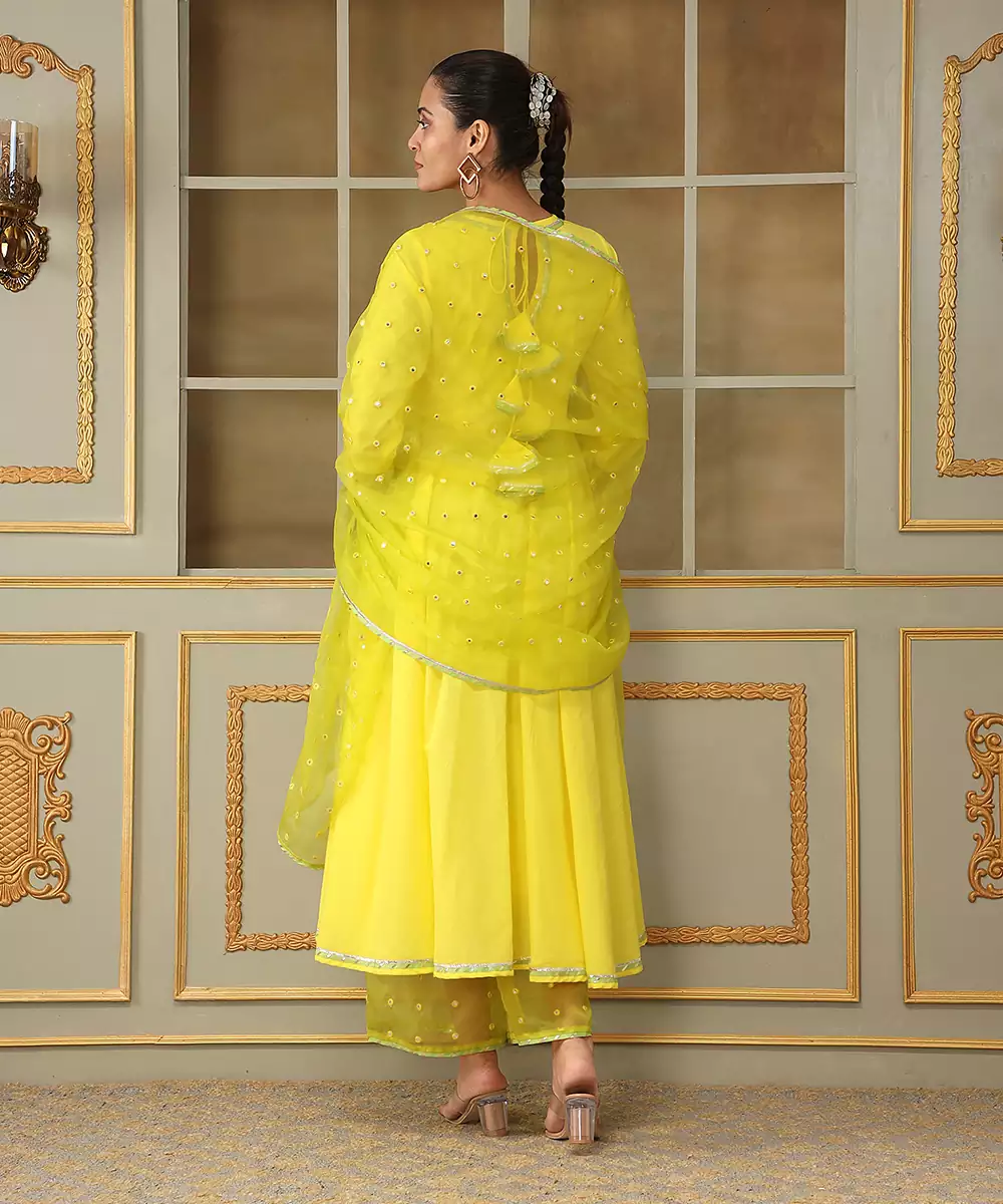 Saadgi A Collection For Today's Women For Everyday Wear, Outing Or Any Occasion Where You Want To Grace Your Presence With The Touch Of Ethnic Style. This Is A Beautiful Anarkali Set Embedded With Magzi Work & Paired With Mirror Work Dupatta. Anarkali : Cotton, Pants: Cotton, Dupatta: Organza, No. Of Components : Set Of 3, Anarkali Length : 48 Inches, Pants Length: 38 Inches, Length Of Dupatta: 2.50 Meters, Neckline : Scoop Neck, Sleeve : 3/4 Sleeve, Stitched: Fully Stitched