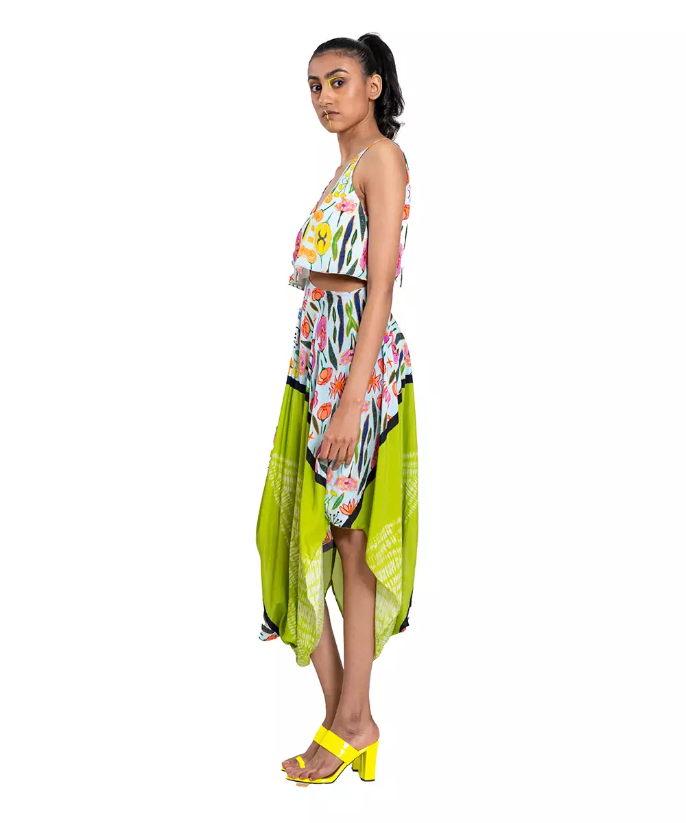Aqua Blue Floral Embellished Lehenga Set With Leheriya Dupatta