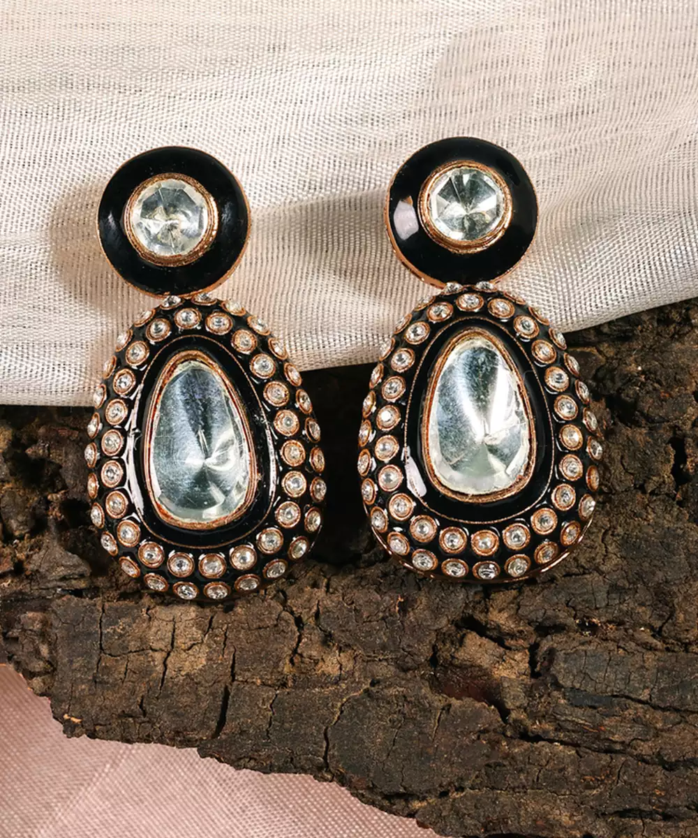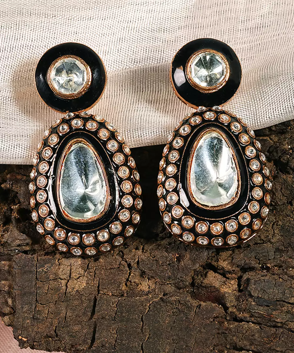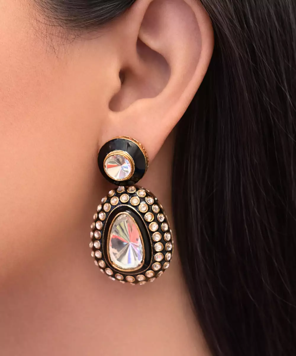 These Gold Plated Kundan Dangler Earrings Exude Timeless Elegance And Traditional Charm. Crafted With Intricate Kundan Detailing And A Radiant Gold Finish, They Add Graceful Movement And A Regal Touch. Perfect For Weddings And Festive Occasions, They Beautifully Enhance Ethnic Looks With Refined Sophistication.