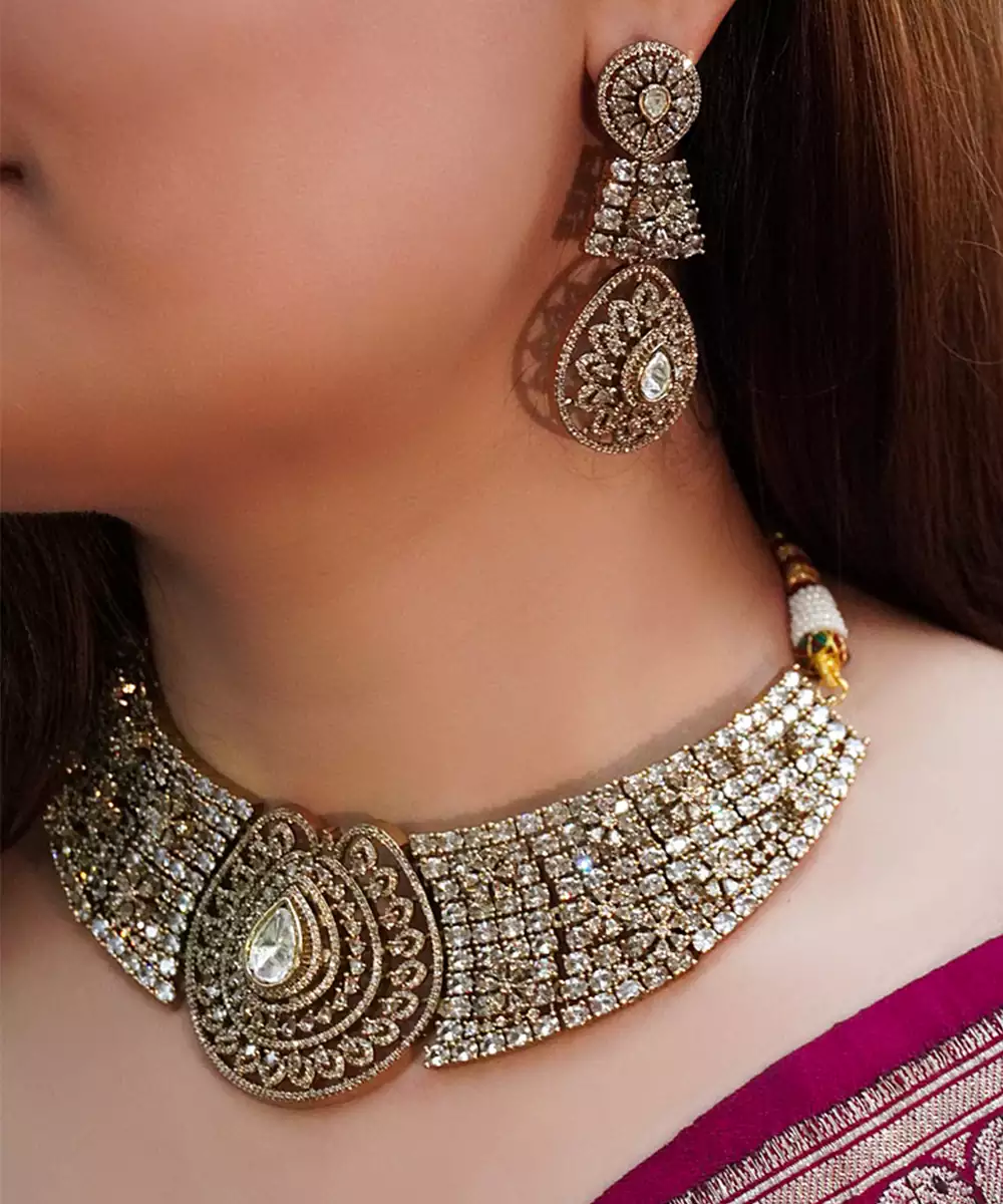 This Gold Plated Kundan Necklace Set Exudes Classic Elegance And Traditional Charm. Featuring Intricate Kundan Craftsmanship With A Radiant Gold Finish, It Adds A Regal Touch To Any Ensemble. Perfect For Weddings And Festive Occasions, It Enhances Ethnic Wear With Timeless Beauty And Refined Sophi