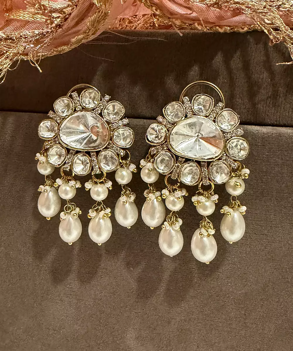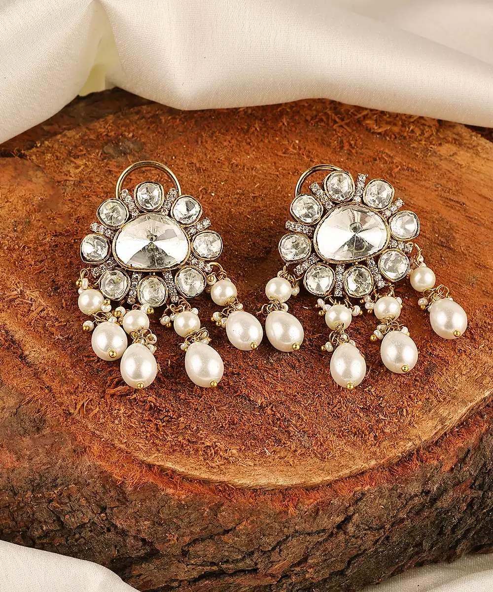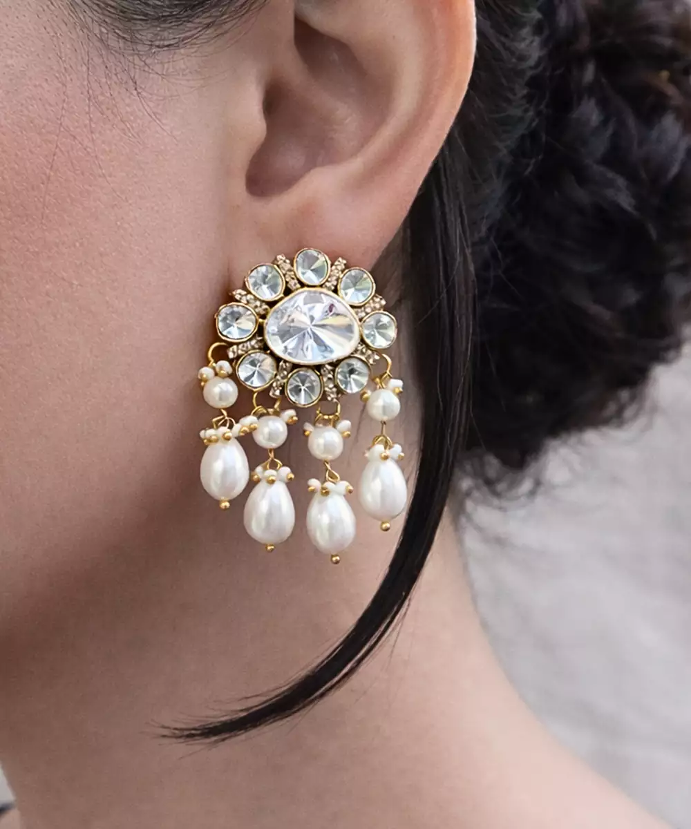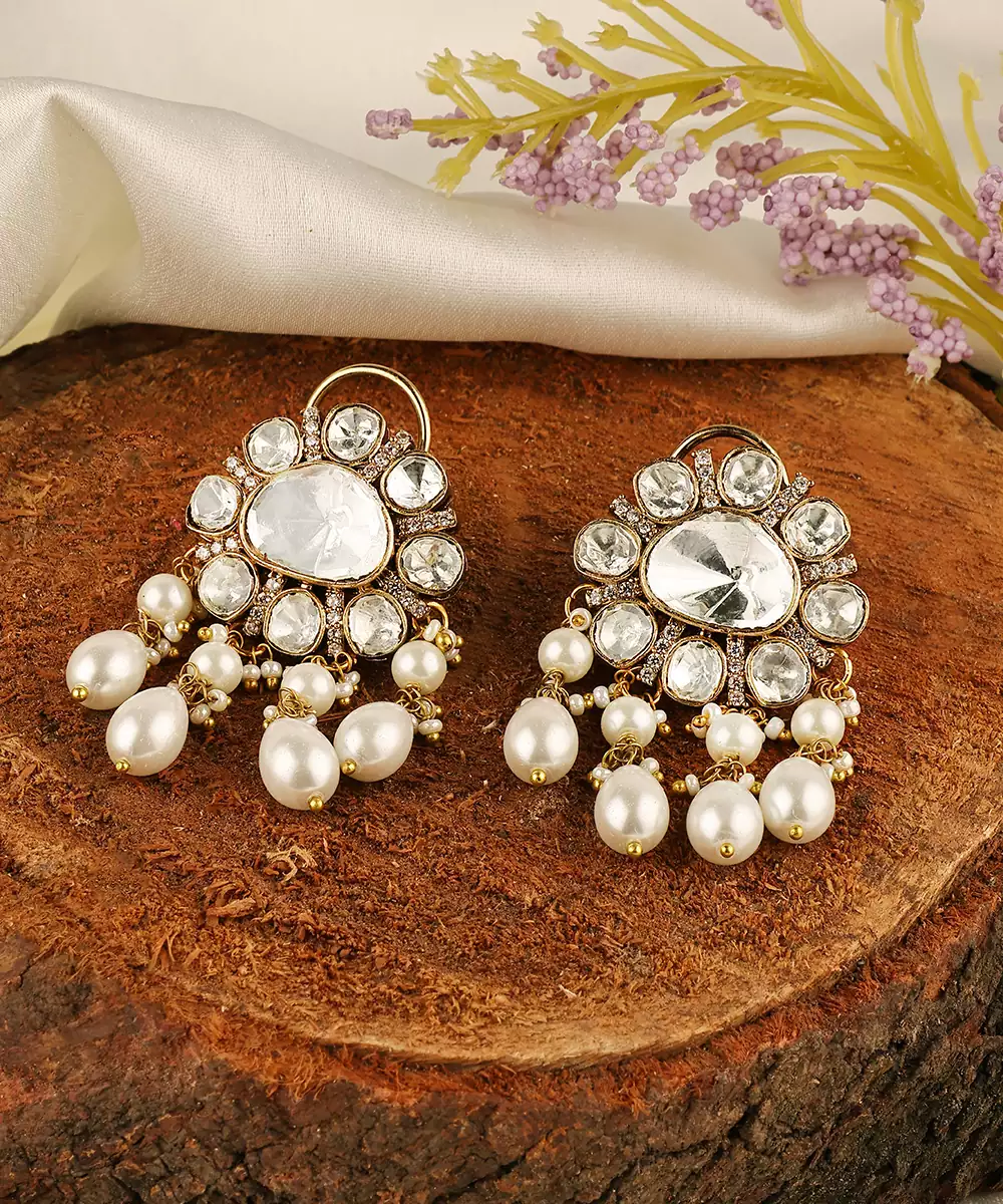 These Gold Plated Kundan Stud Earrings Embody Timeless Elegance And Traditional Charm. Crafted With Intricate Kundan Detailing And A Radiant Gold Finish, They Offer A Refined Yet Versatile Look. Perfect For Weddings And Festive Occasions, They Beautifully Complement Ethnic Outfits With Graceful Sophistication.