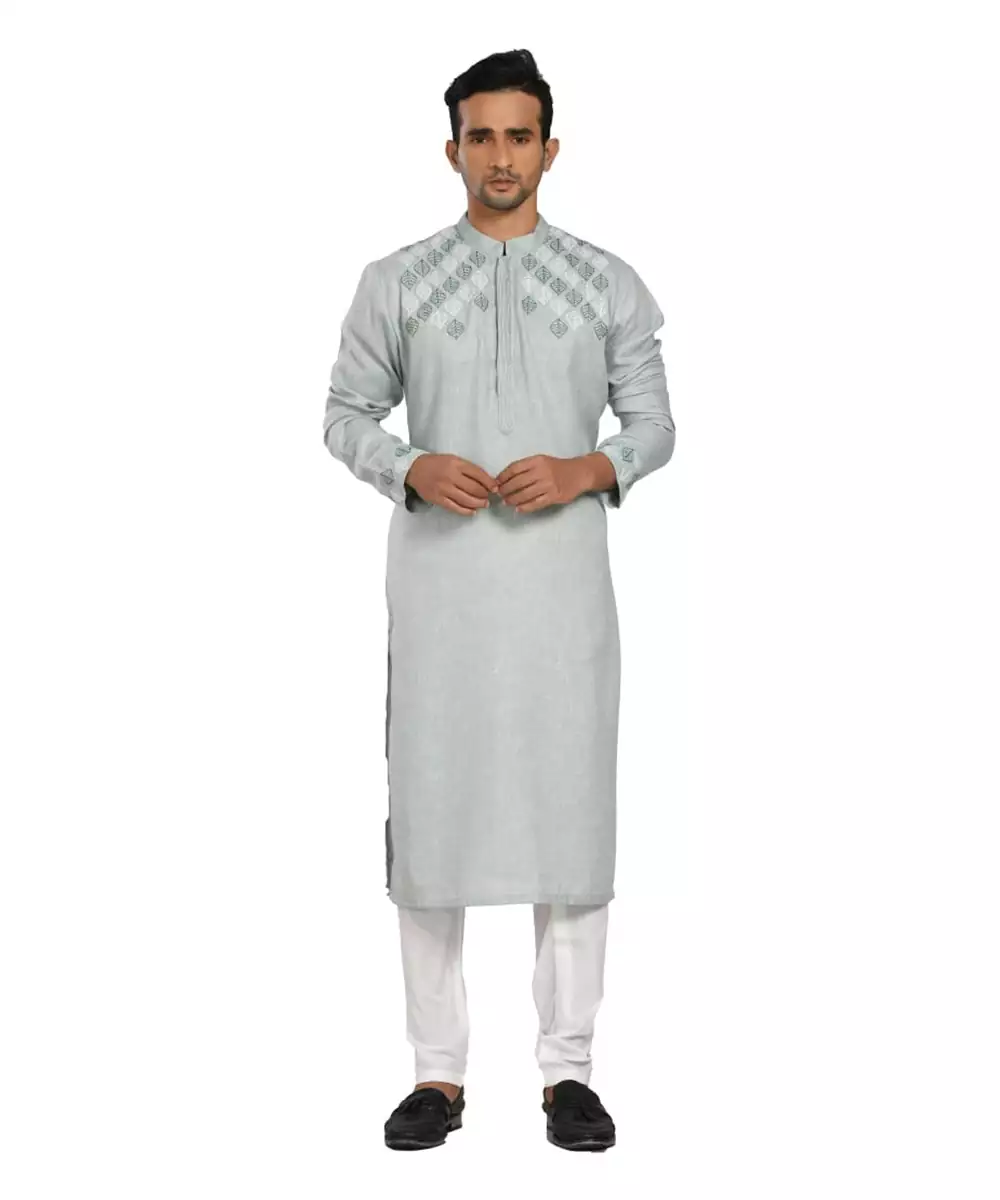 Powder Aqua Blue Leaf Embroidery Kurta Set.