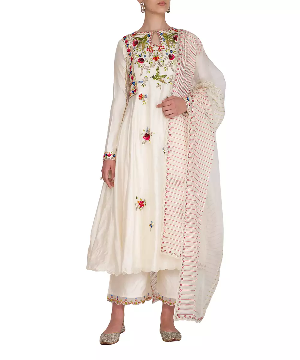 Ivory Suit Set With Hand Embroidered Yoke.