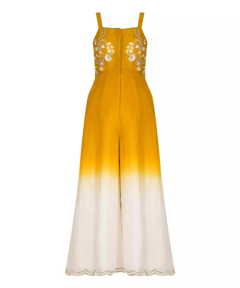 Ombre Jumpsuit With Hand Embroidery On Yoke.