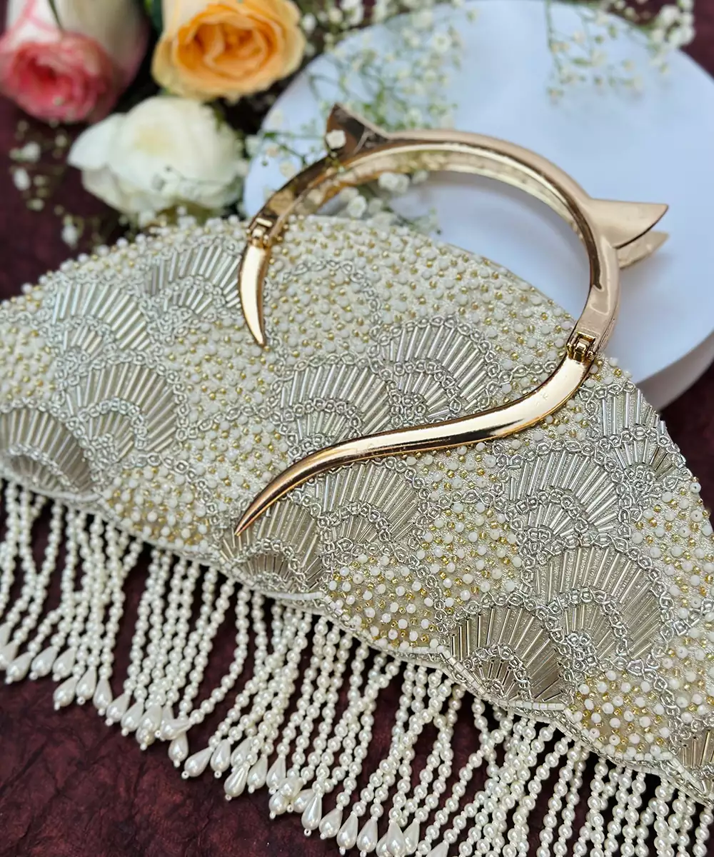 Mini Handbag With Fancy Metal Hoop To Carry, Comes With Multiple Compartments For Storing Cash And Cards.
