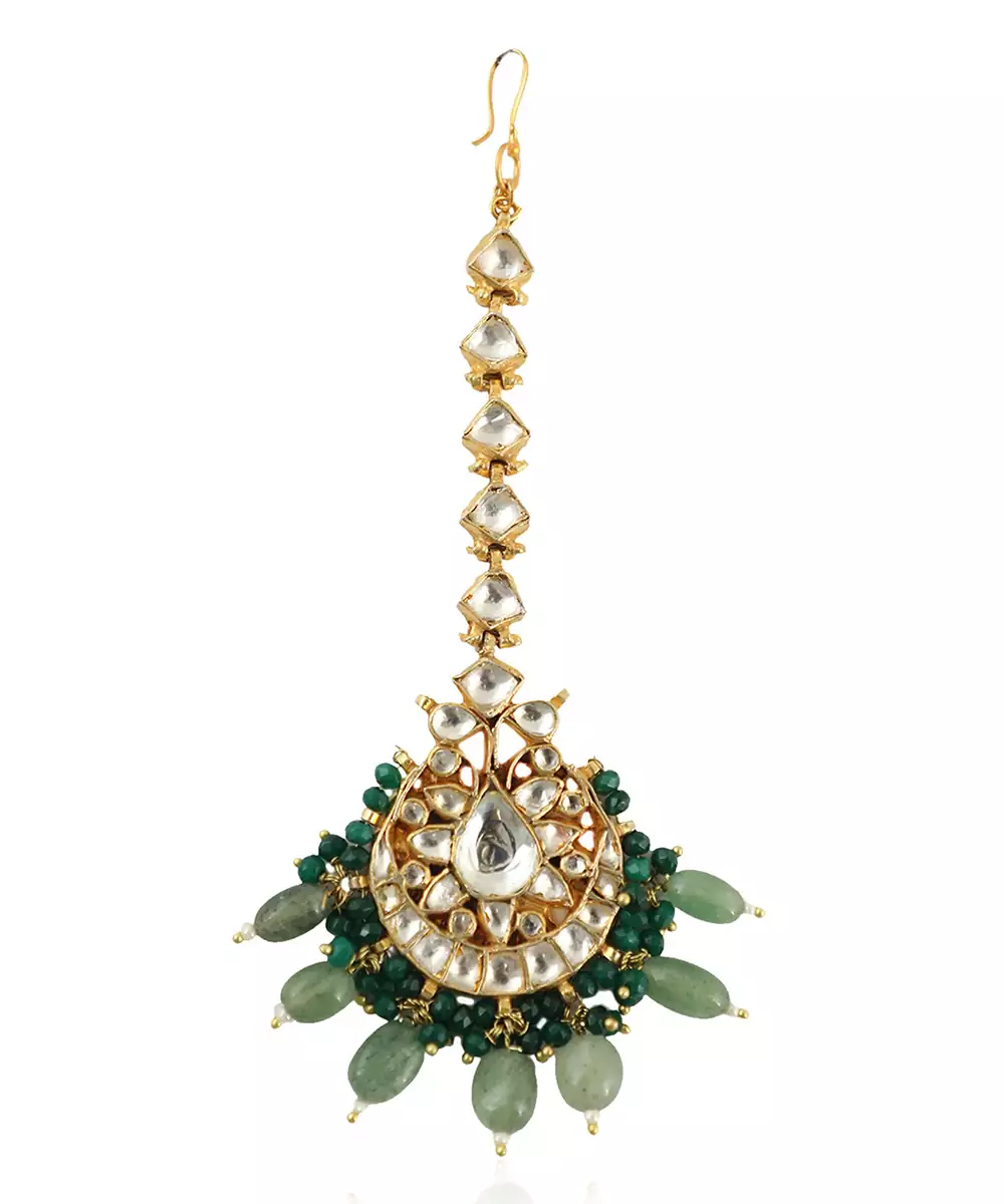Featuring White Tikka With Emerald And Sea Green Beads.
