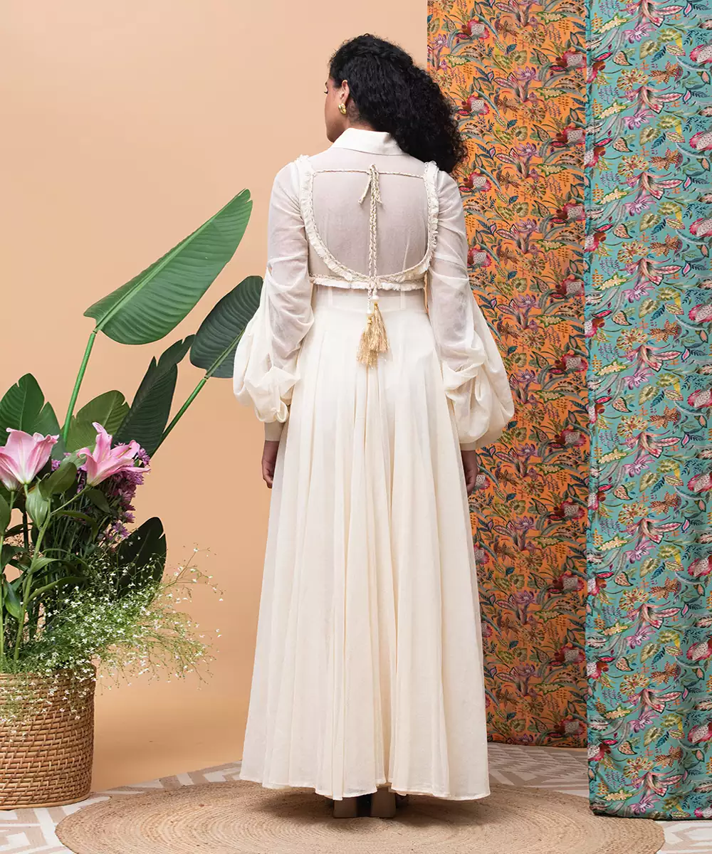 Featuring An Overlapped Jacket With A Deep V Neckline Along With Fringes At The Hemline And With Detail Of Buttons On Side Paired With Pencil Pants