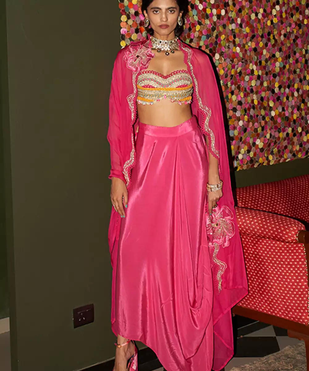 Components: 1 Bralette / 1 Draped Skirt / 1 Cape