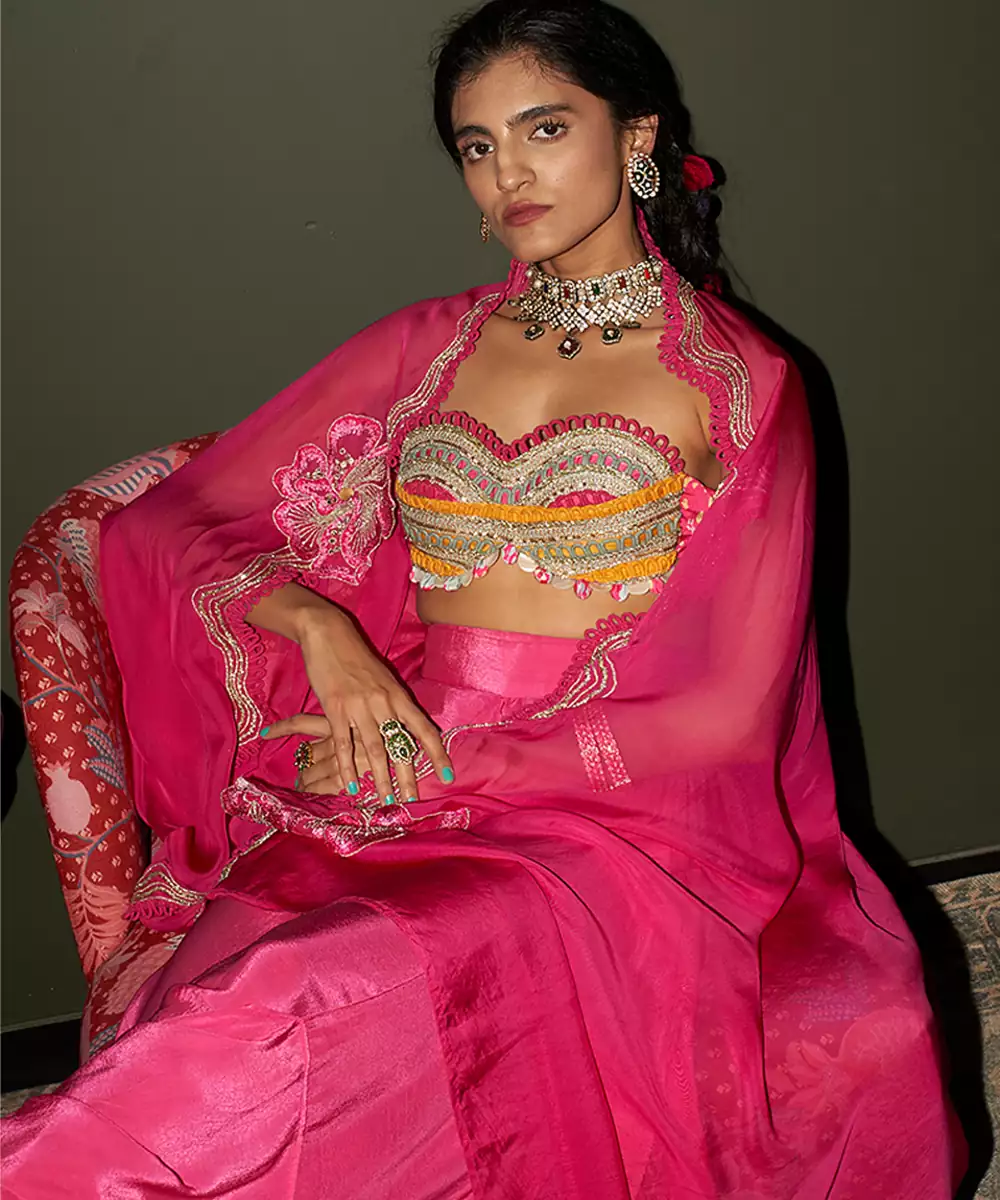 A Graceful Pink Crepe Co Ord Set Adorned With Delicate Embroidery For A Refined Finish. The Lightweight Fabric And Coordinated Design Ensure Ease Of Wear While Maintaining Elegance, Making It Ideal For Festive Gatherings, Daytime Functions, And Contemporary Ethnic Styling.