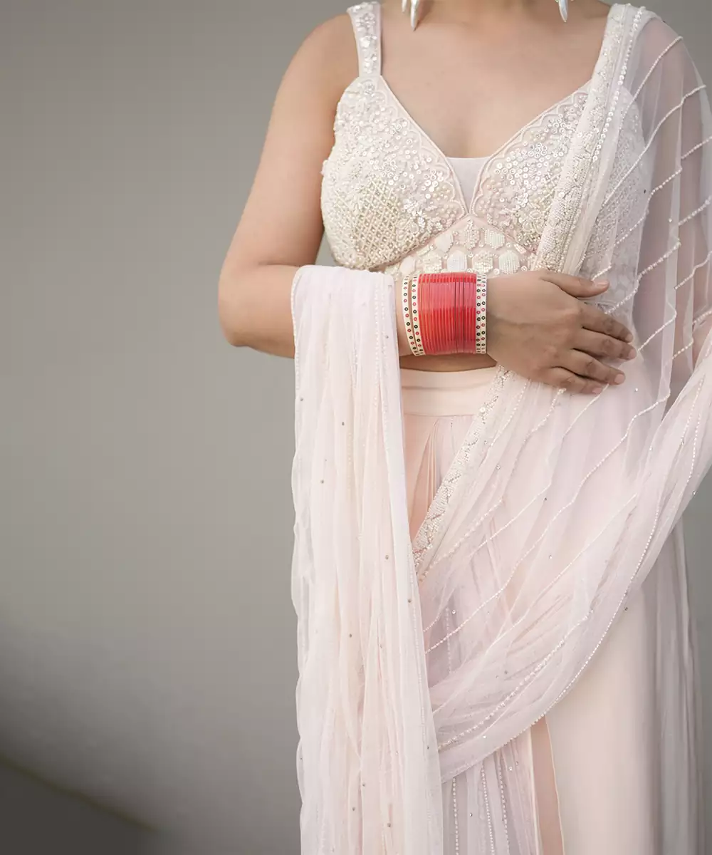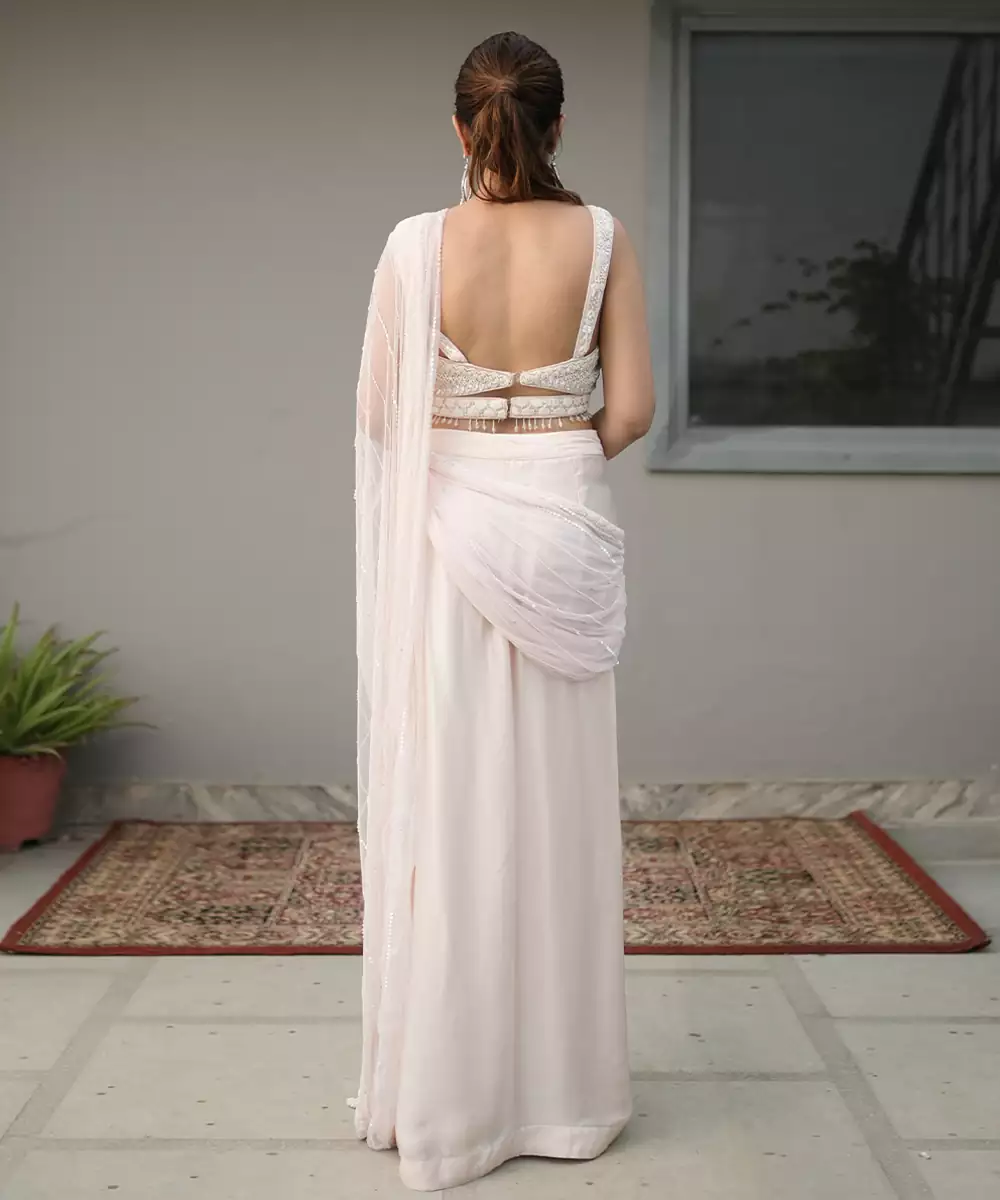 This White Embroidered Georgette Saree Exudes Graceful Elegance And Festive Charm. Crafted From Lightweight Georgette Fabric, It Features Intricate Embroidery That Adds A Refined, Flowing Touch. Perfect For Weddings And Special Occasions, It Drapes Beautifully And Enhances Traditional Looks With Timeless Sophistication.