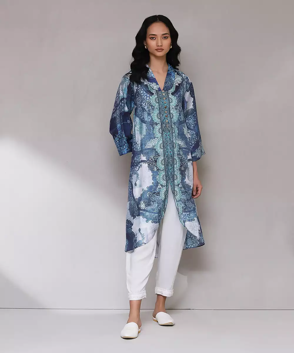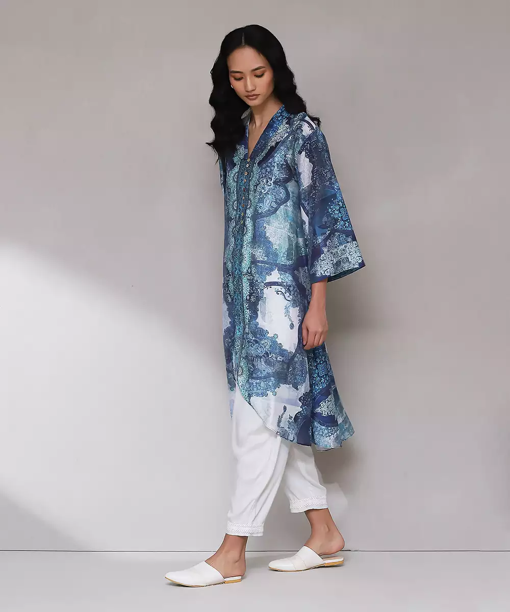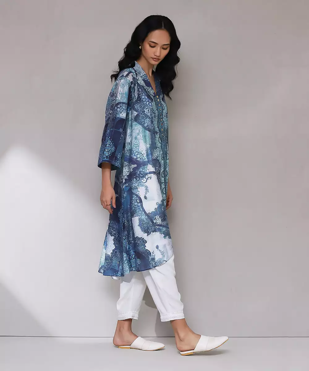 Featuring Blue Printed Kurta With Pants. Colour : Blue Fabric : Blended Cotton Components : 2 (Kurta, Pant ) Work : Printed