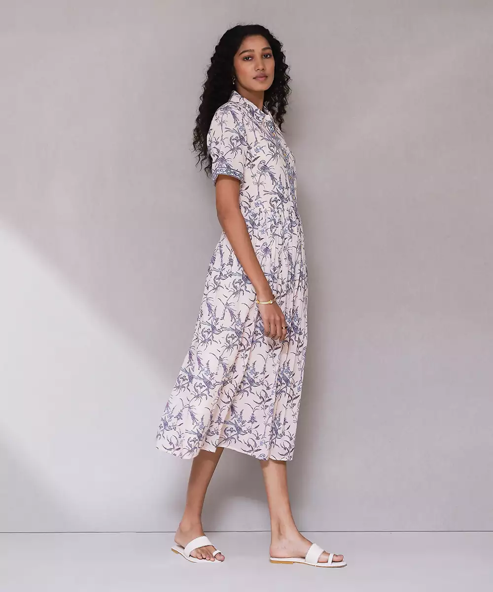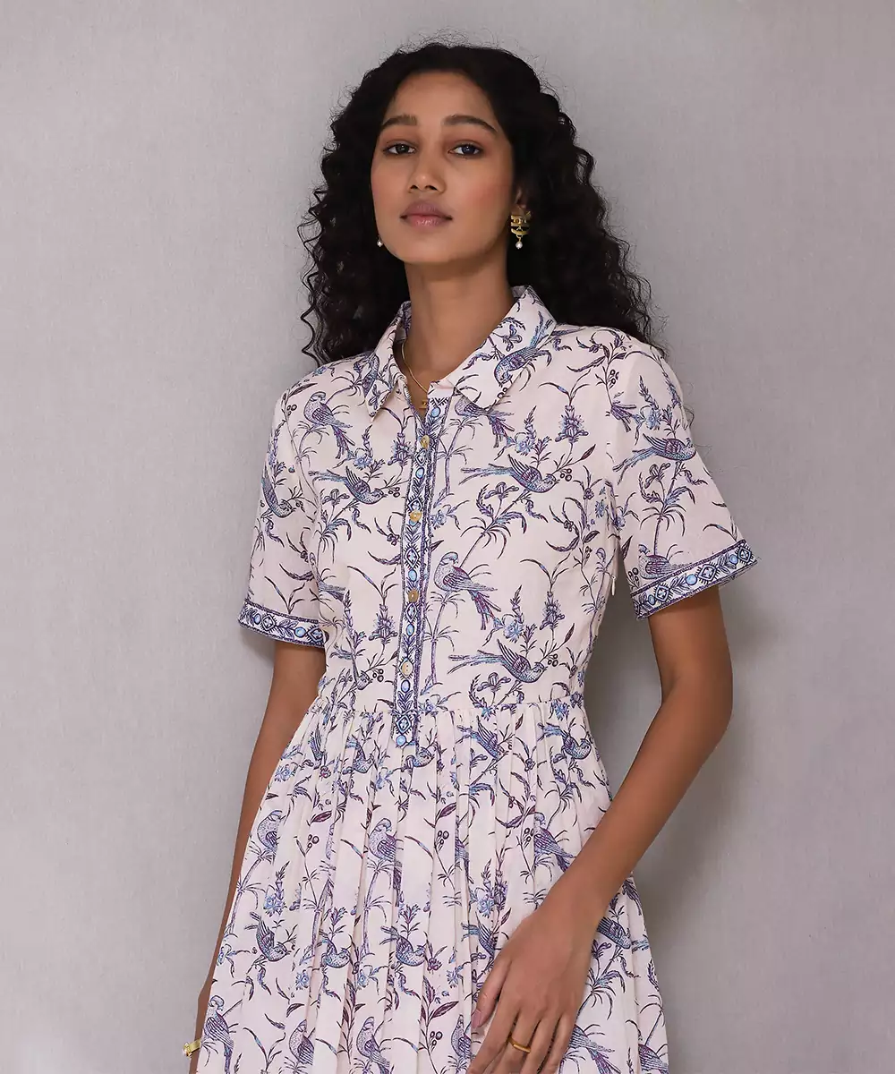 Featuring Ecru Printed Shirt Dress. Colour :White Fabric :Cotton Components : 1 (Dress) Work :Printed