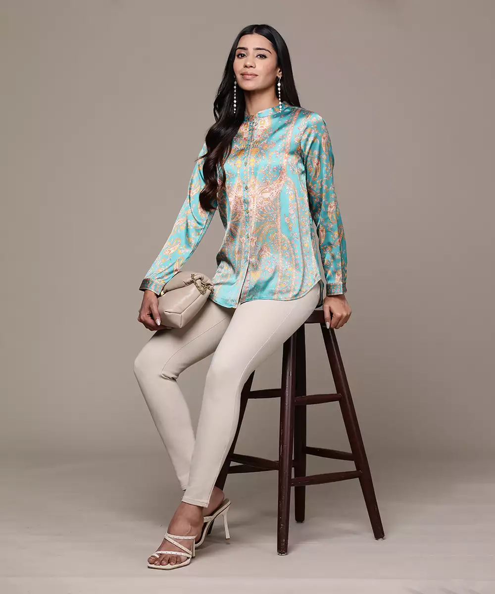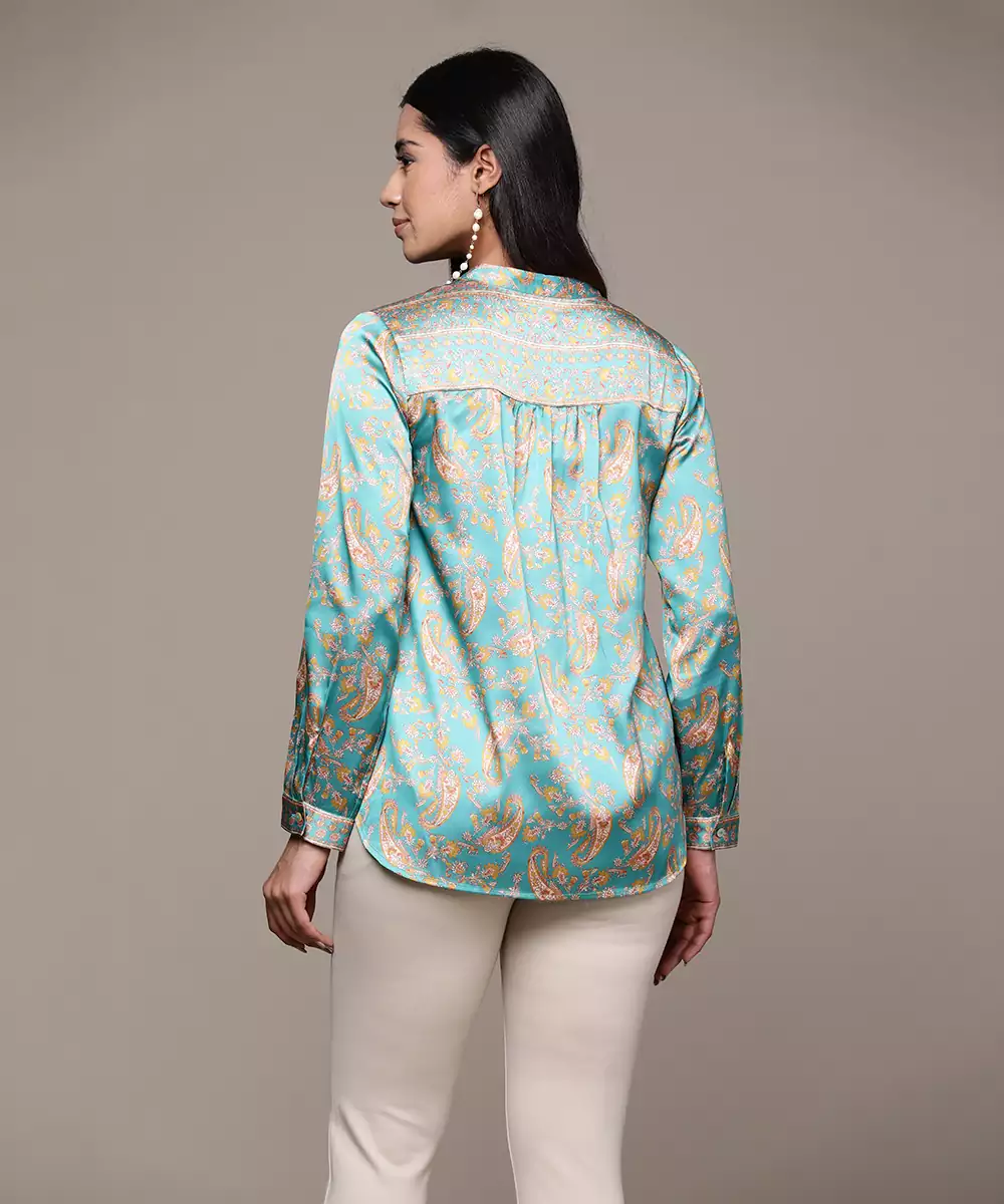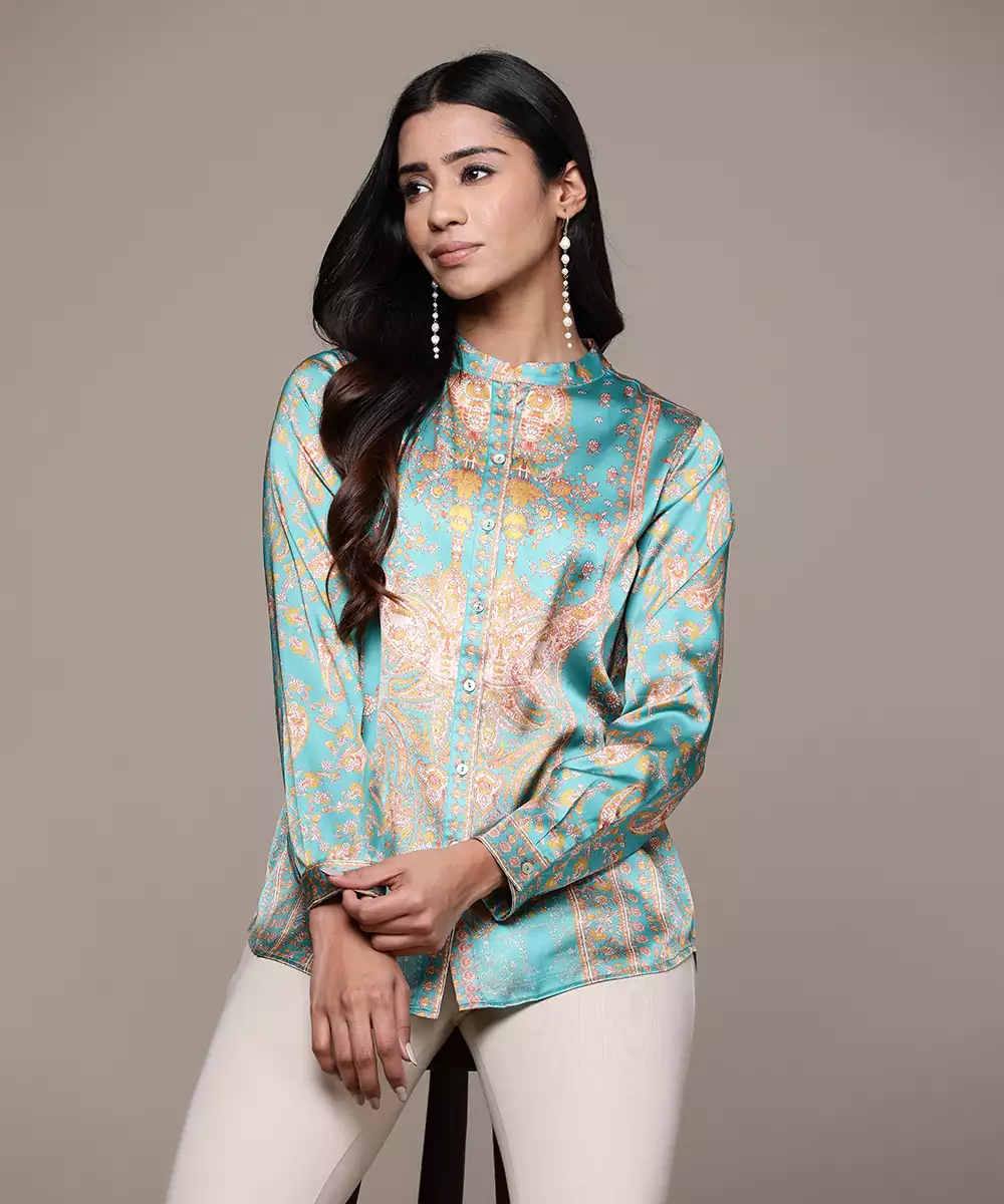 Aarke Emerald Printed Shirt Color :Emerald Fabric:Polyester Components: 1 (Shirt) Work:Printed