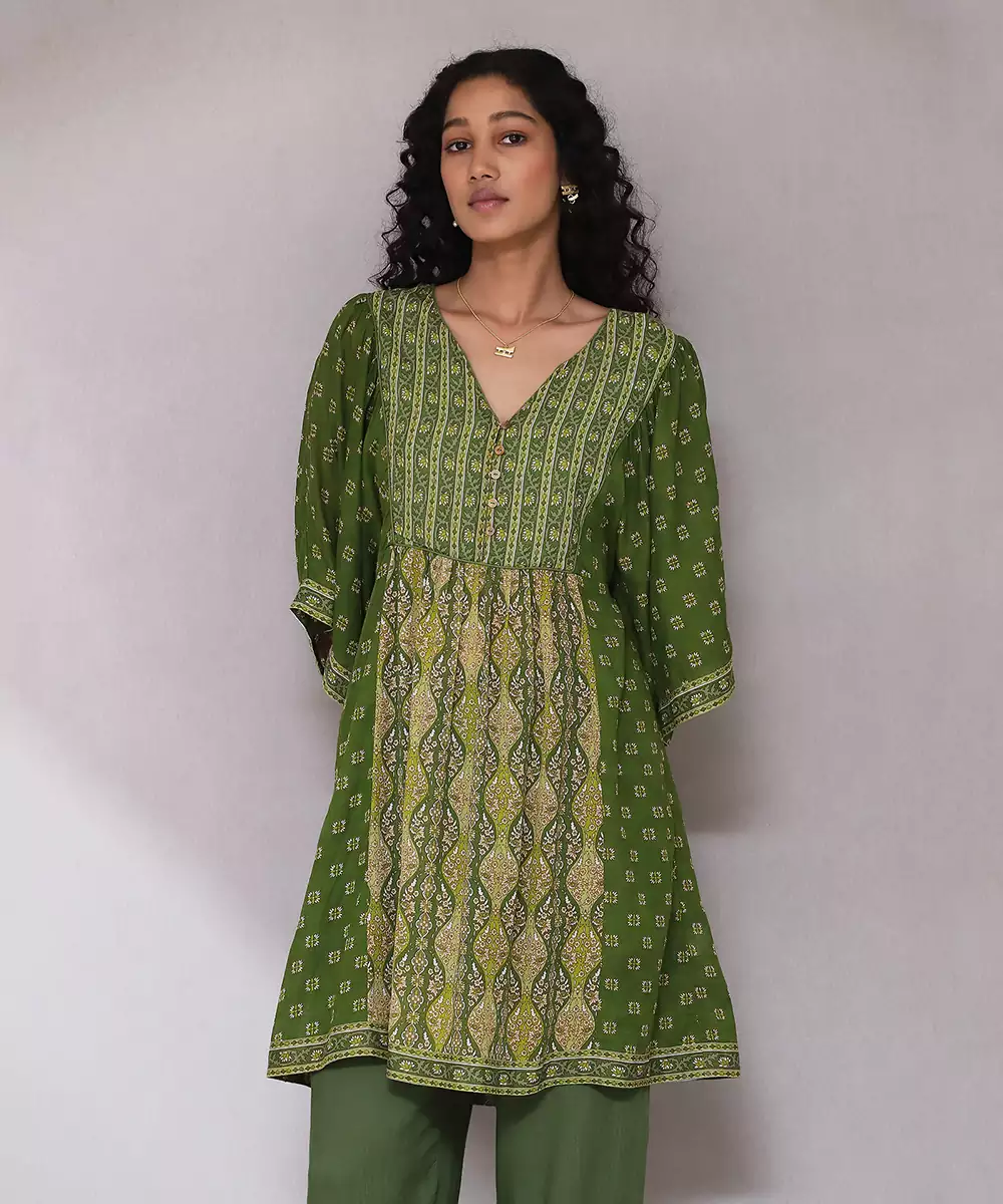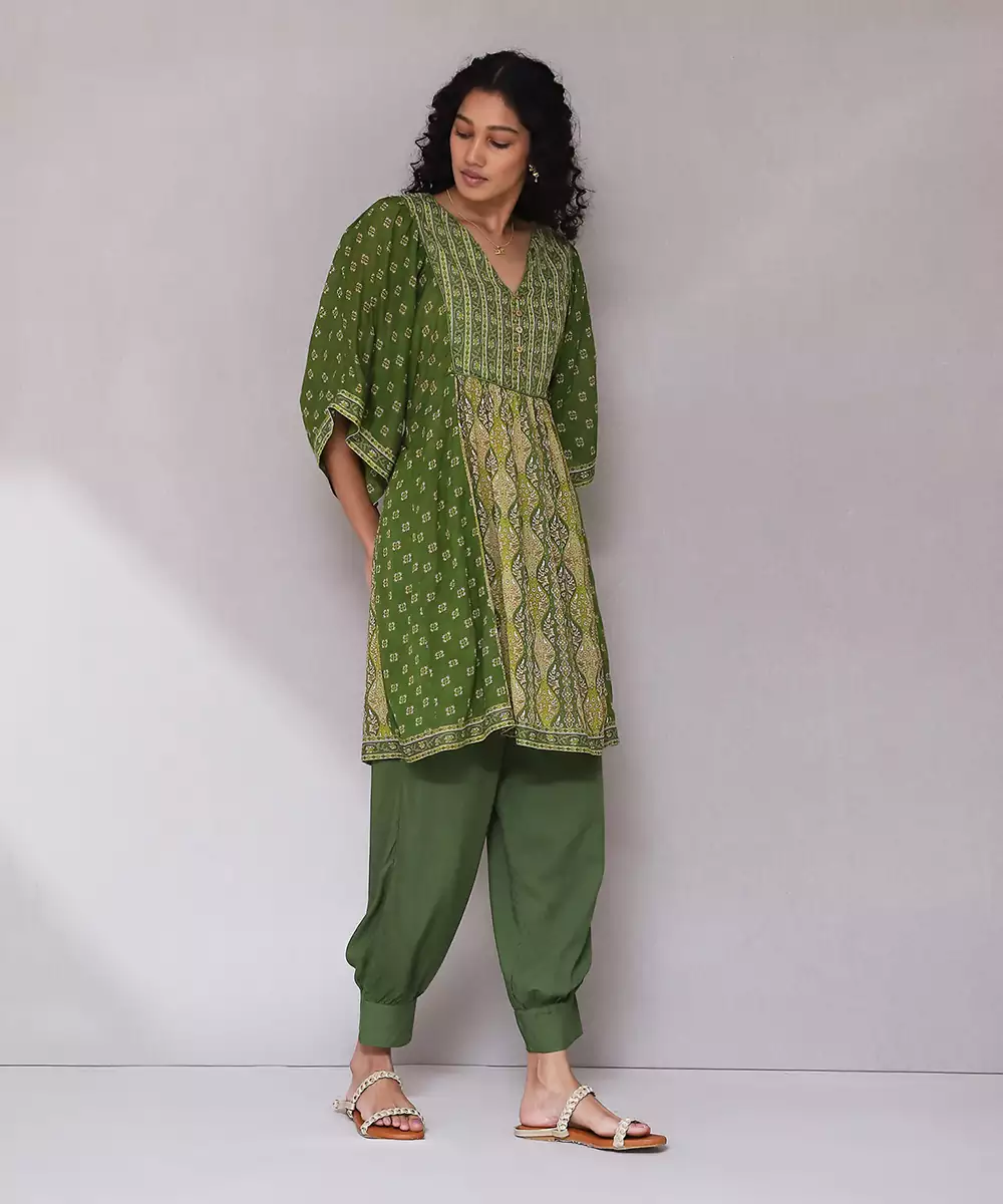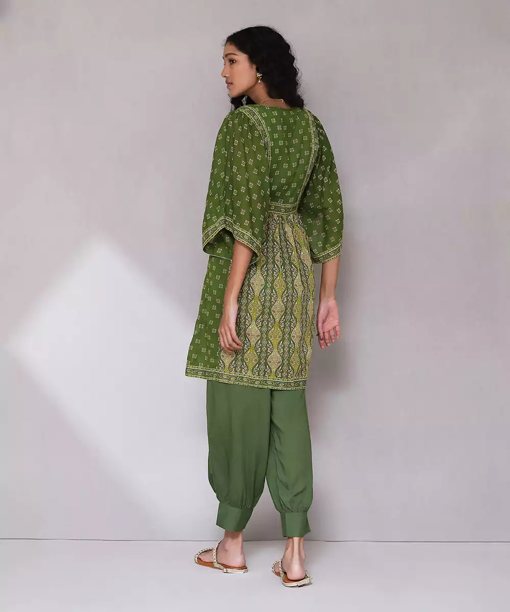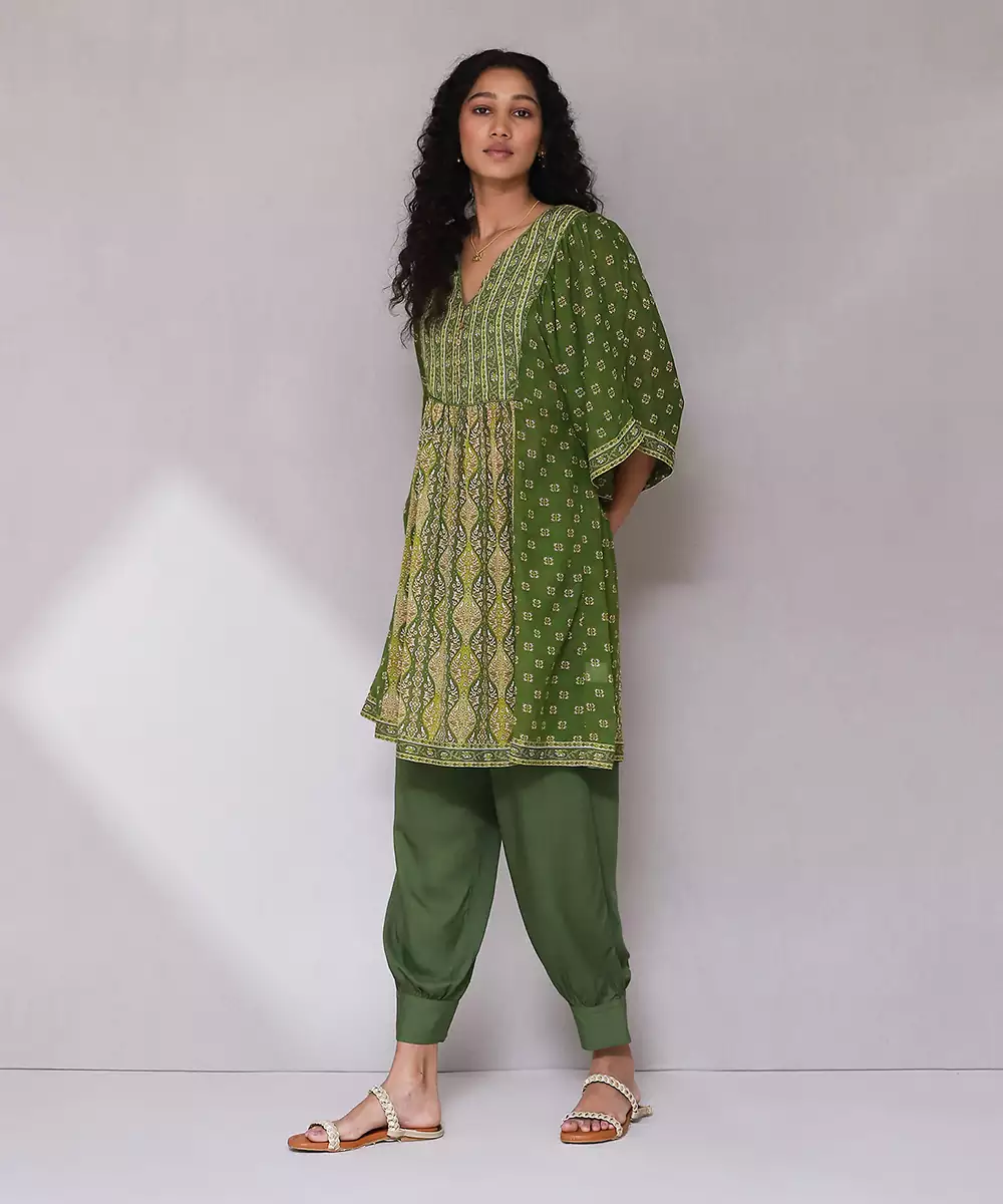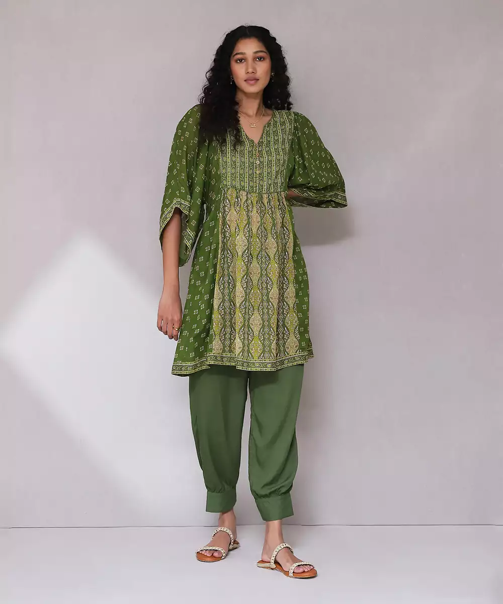 Featuring Green Printed Kurti With Pants. Colour :Green Fabric :Blended Cotton Components : 2 (Kurta, Pant ) Work :Printed
