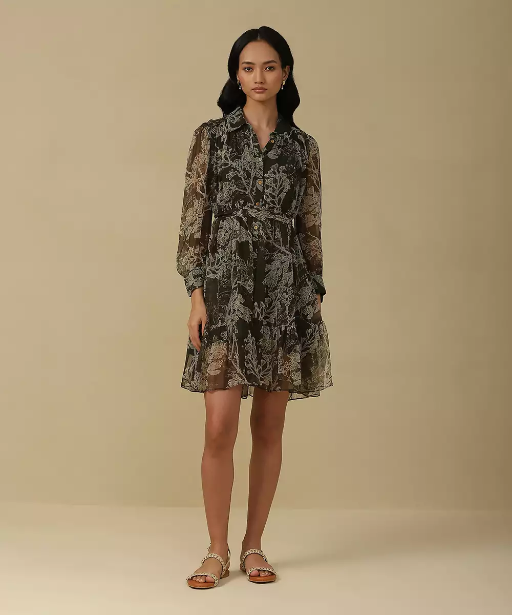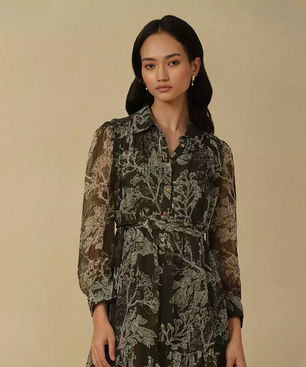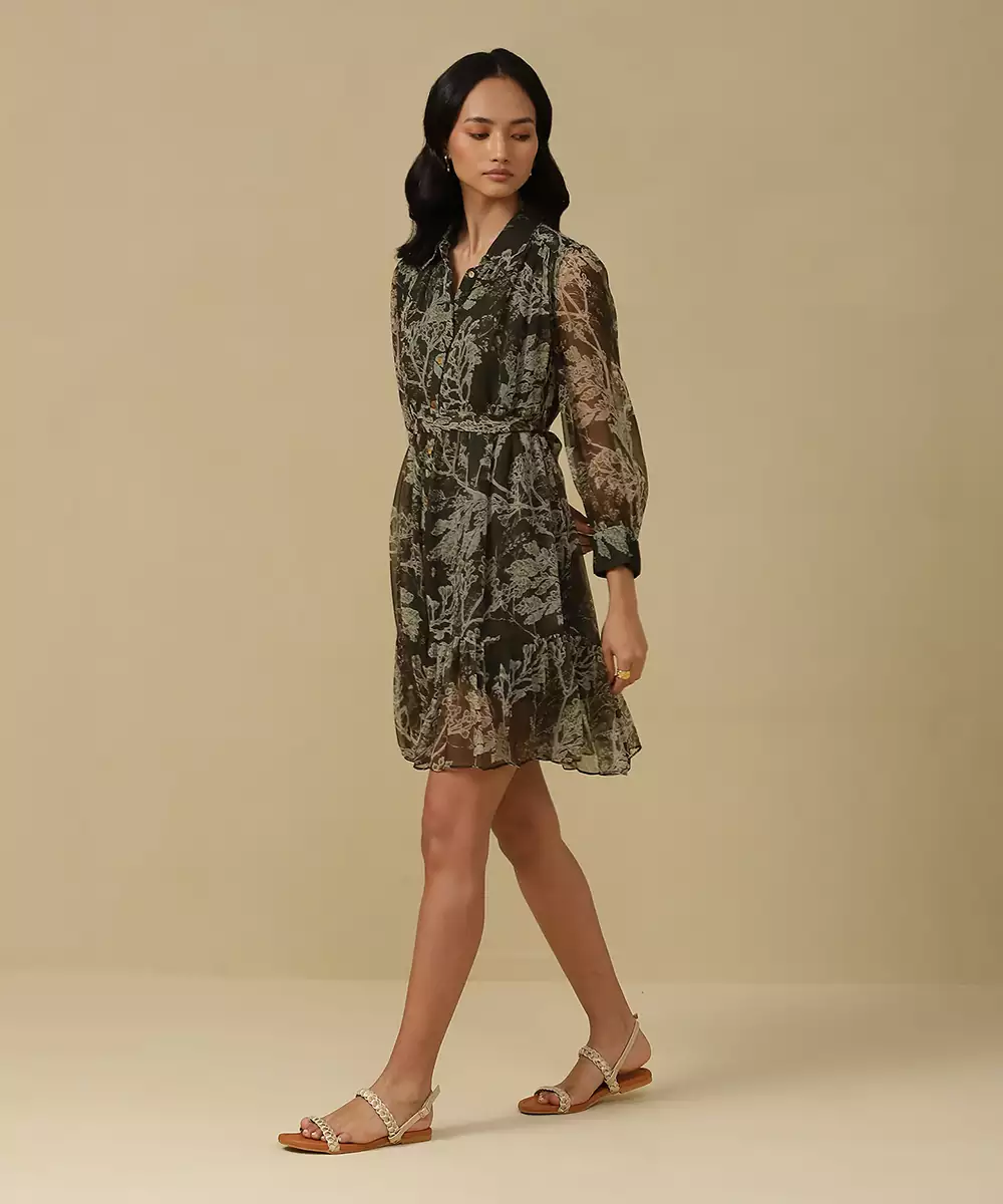 Featuring Olive Green Printed Shirt Dress. Colour :Olive Fabric :Blended Cotton Components : 1 (Short Dress) Work :Printed