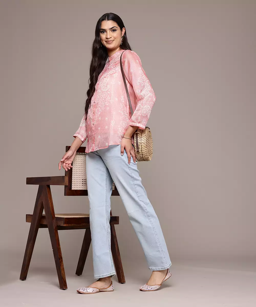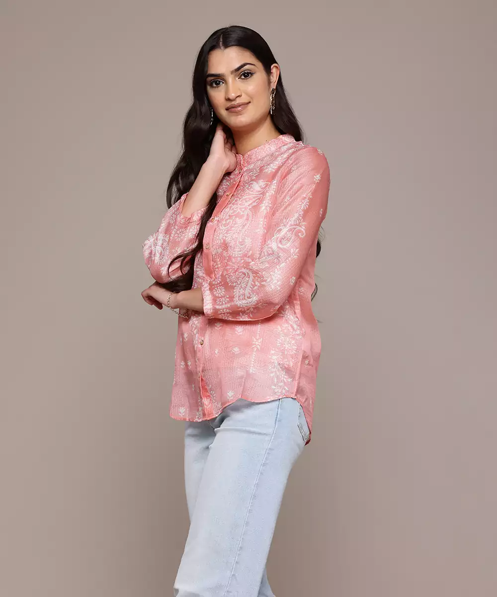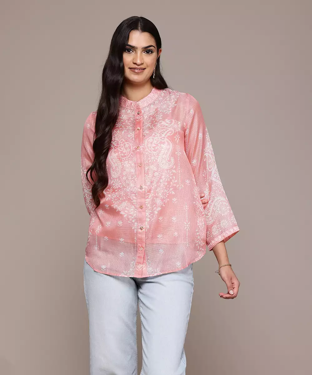 Aarke Peach Full Sleeve Shirt Color: Peach Fabric:Polyester Components:1(Shirt) Work: Printed