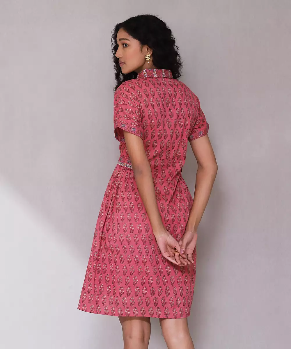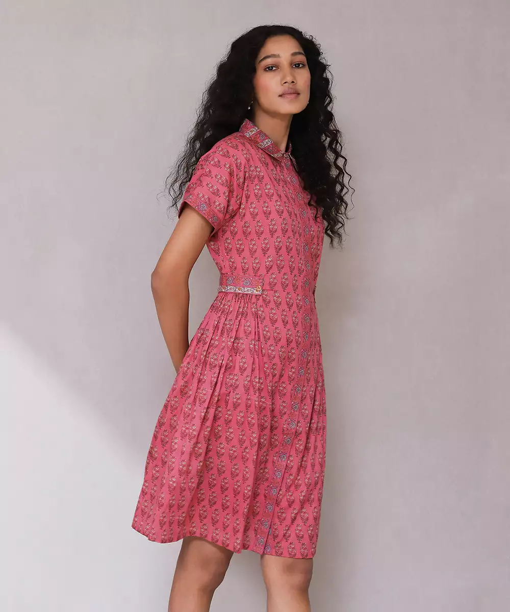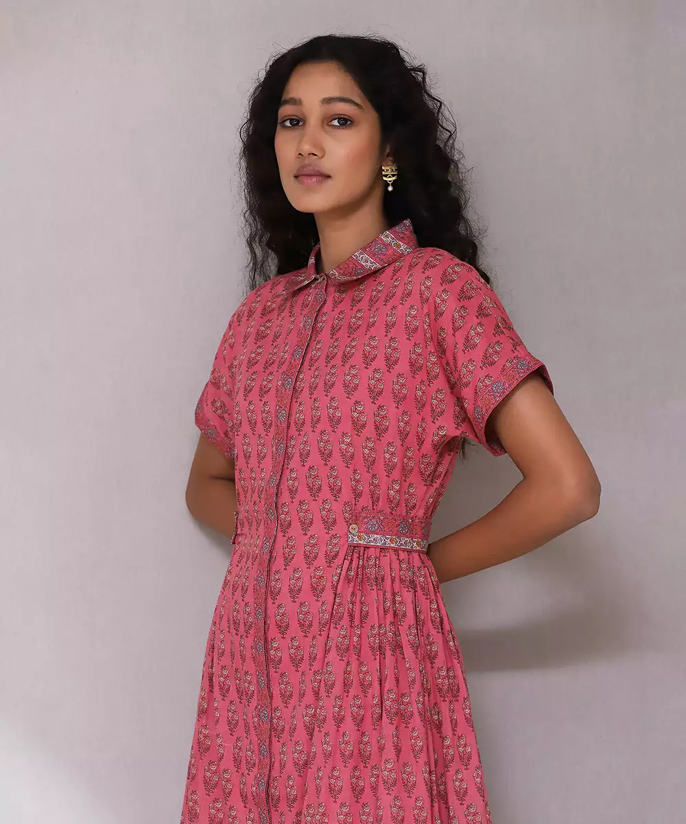 Featuring Pink Floral Print Shirt Dress. Colour :Pink Fabric :Cotton Components : 1 (Dress) Work :Printed