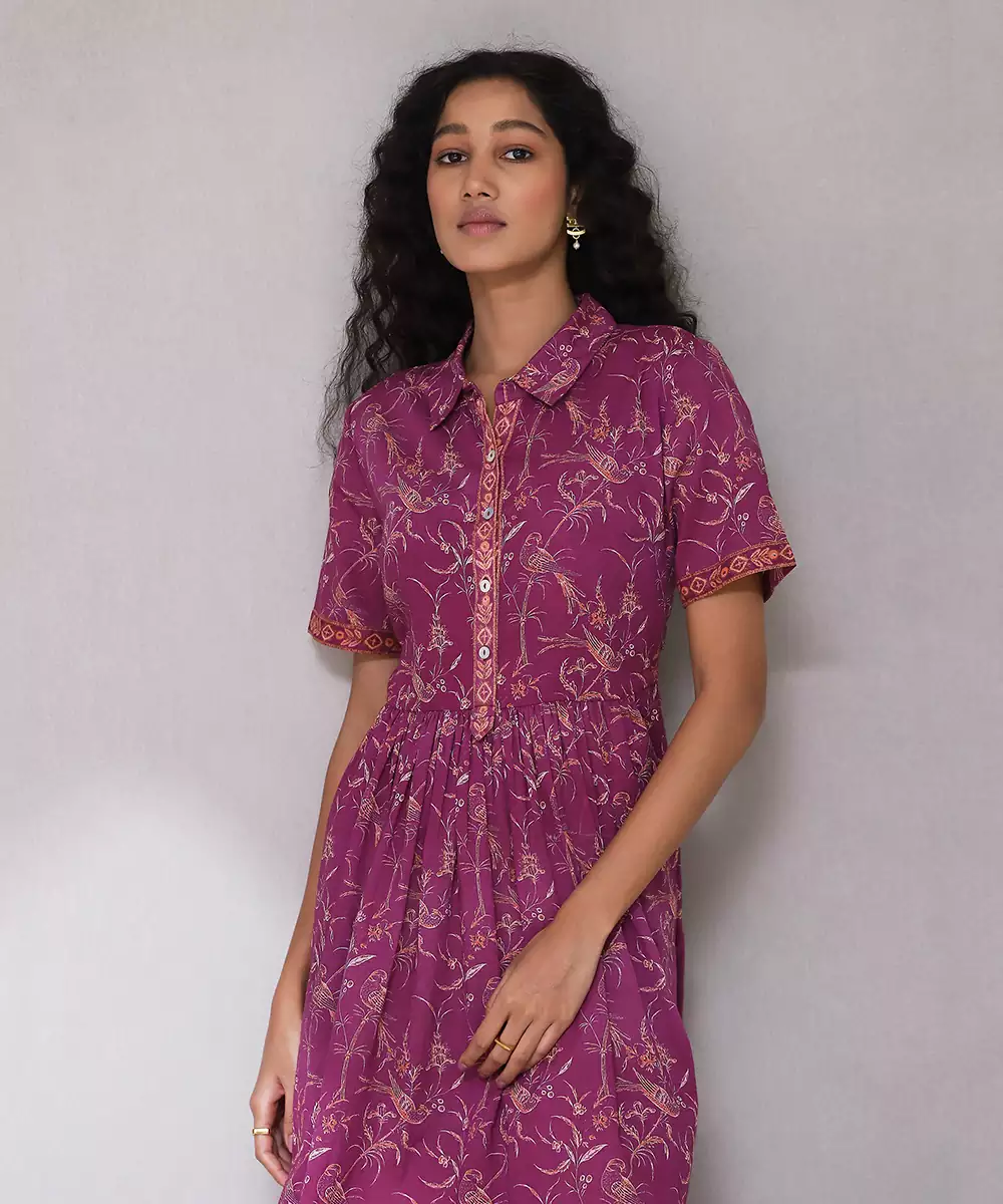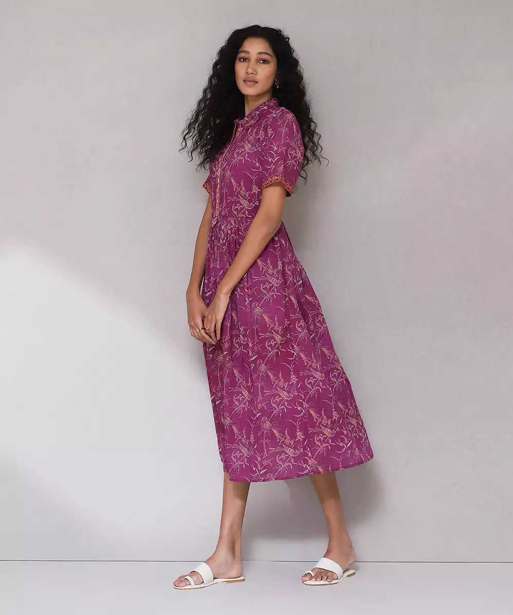 Featuring Purple Printed Shirt Dress. Colour :Purple Fabric :Cotton Components : 1 (Dress) Work :Printed