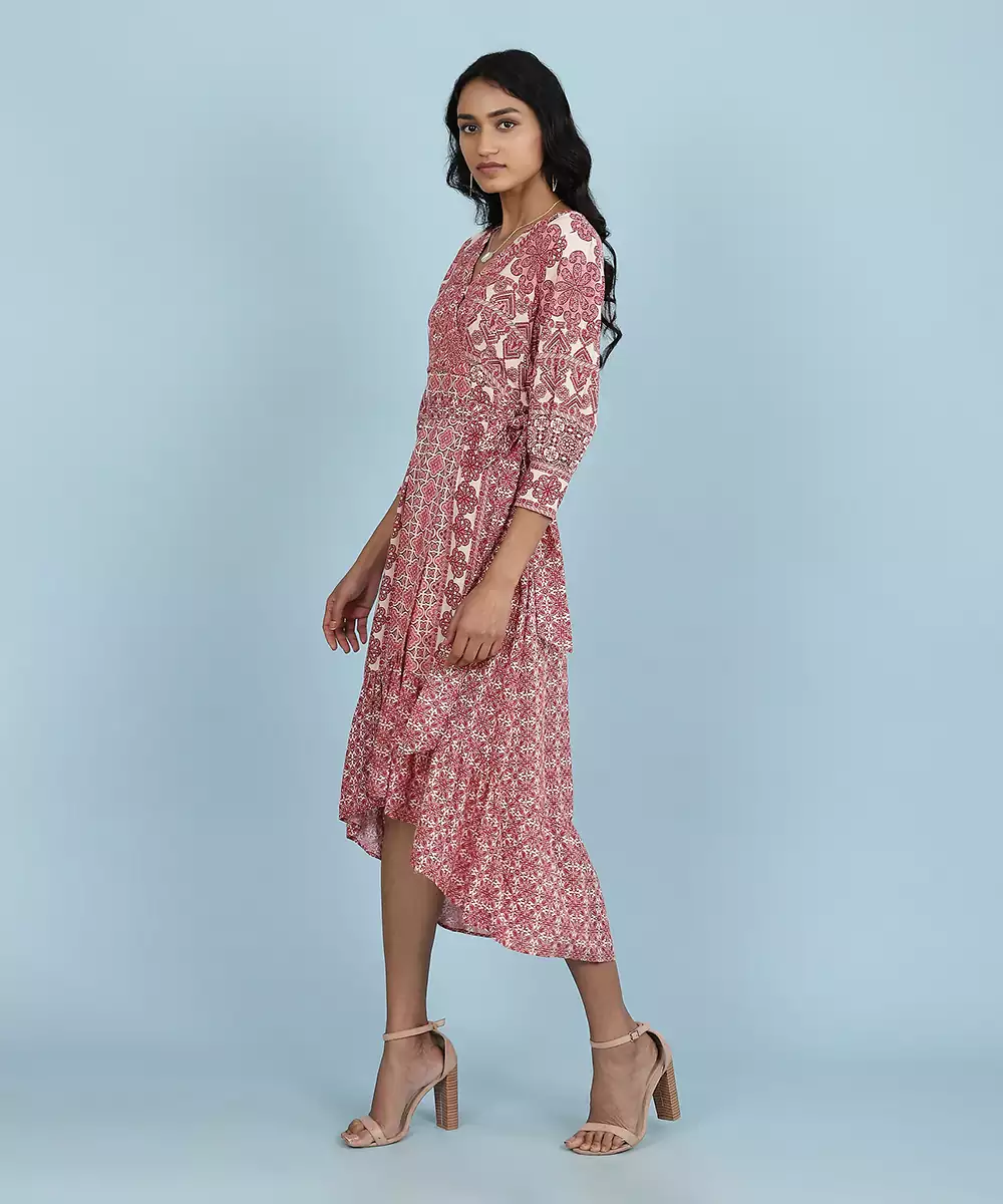 Aarke Red Burgandy Printed Dress Color:Burgandy Fabric: Viscose Components:1(Dress) Work:Printed