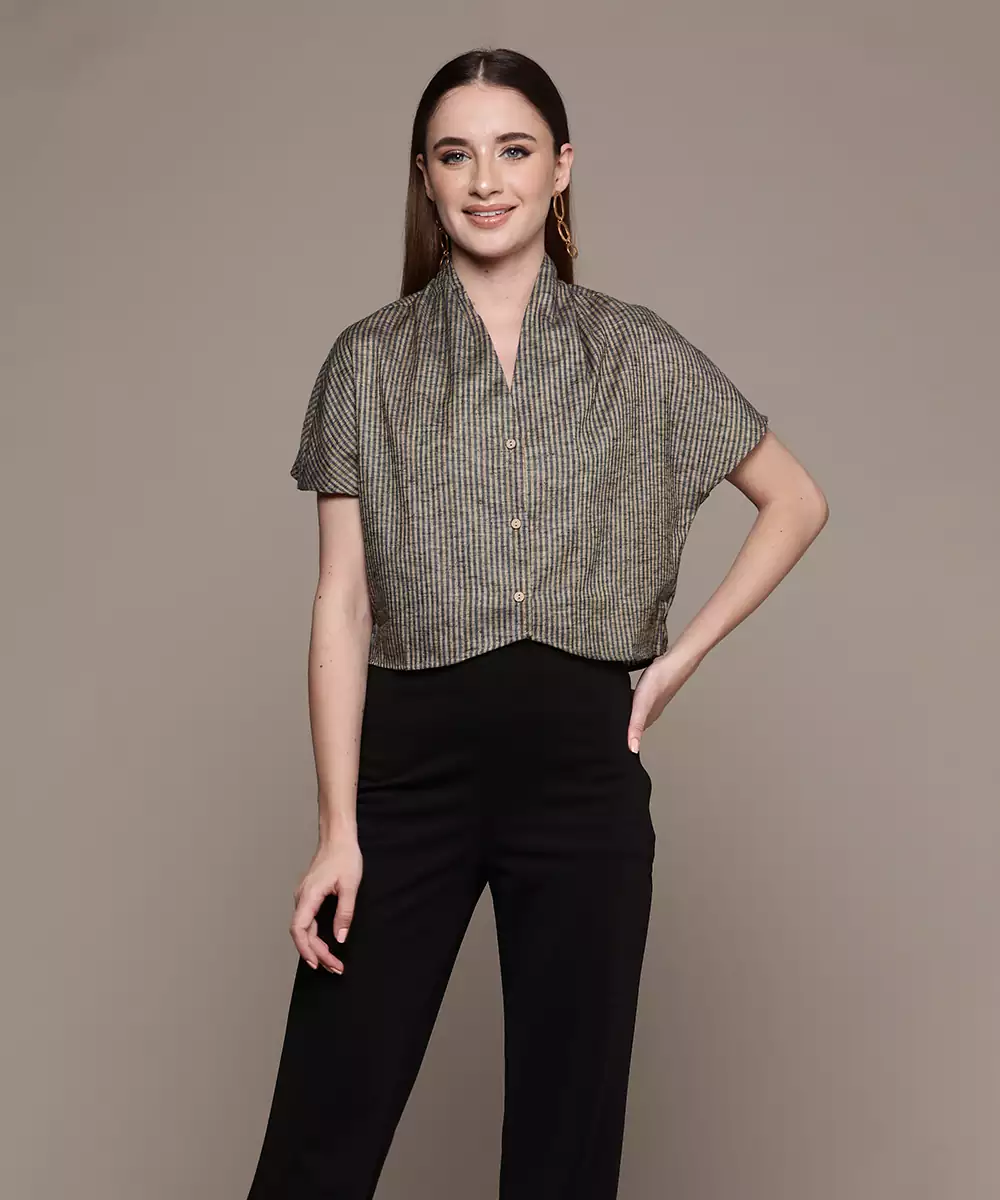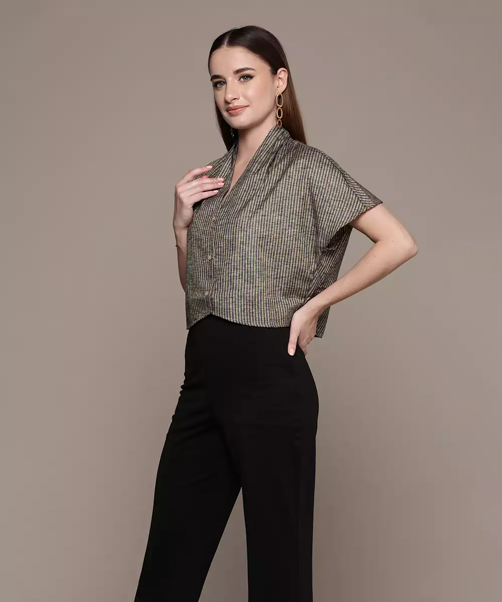 Aarke Yellow Gingham Cropped Top Color: Yellow Fabric:Polyester Components:1 (Top) Work:Printed