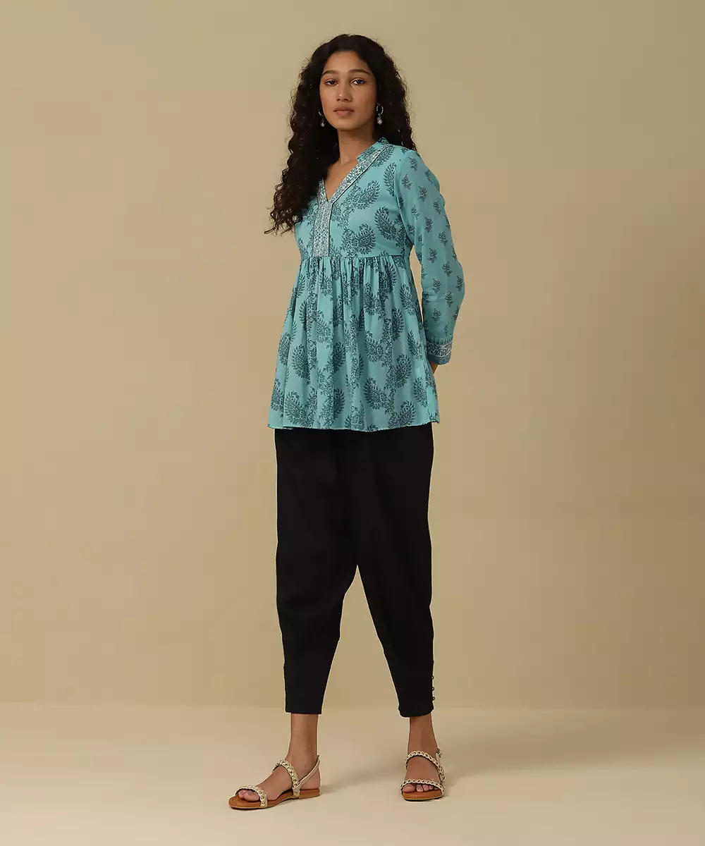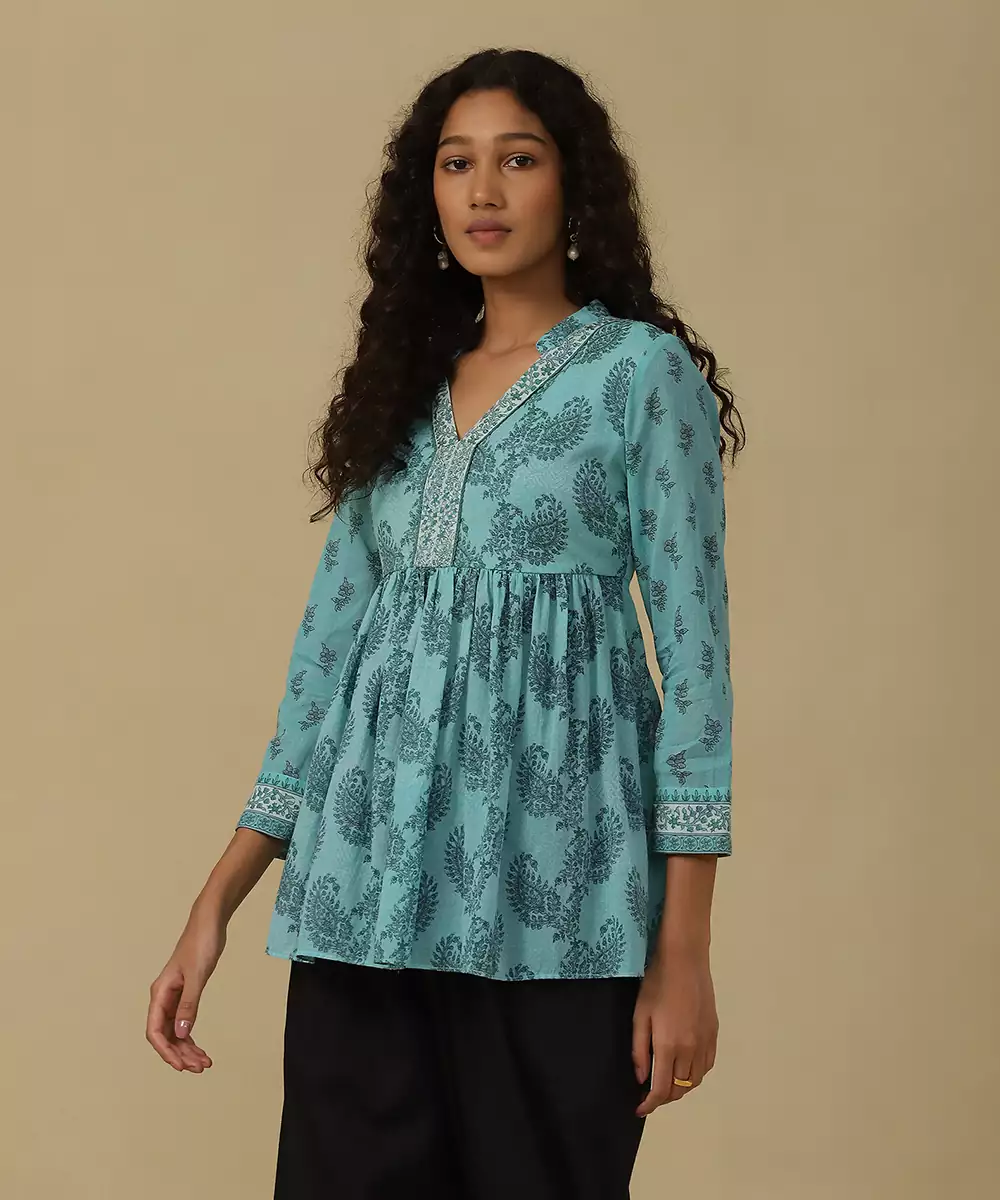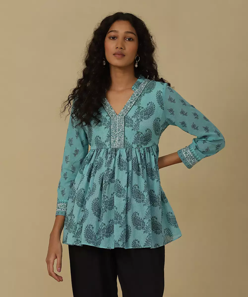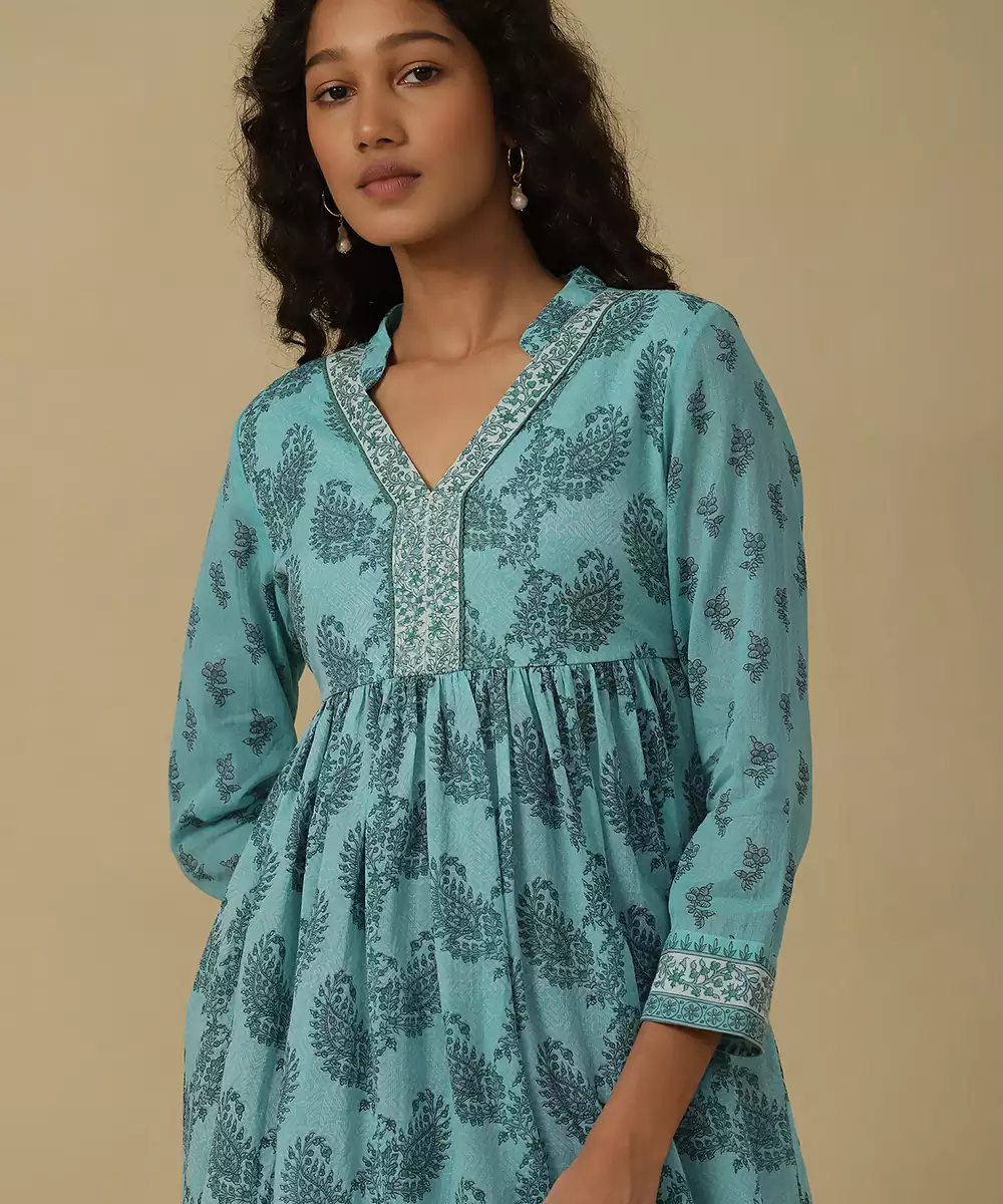Featuring Aqua Paisley Print Kurti With Camisole.