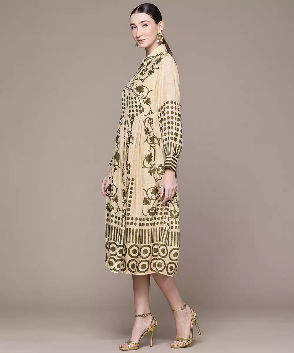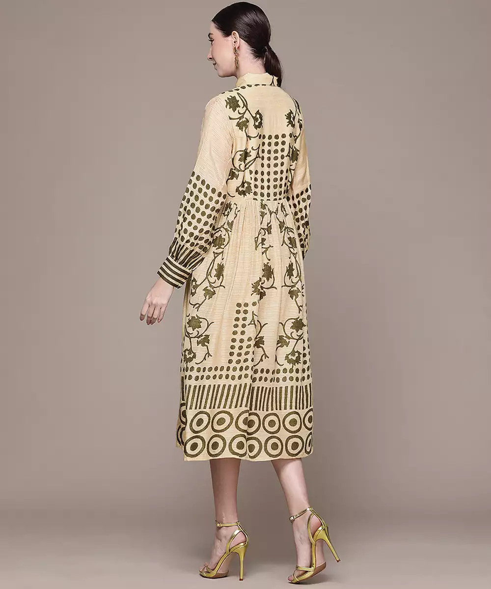 Beige Printed Viscose Dress