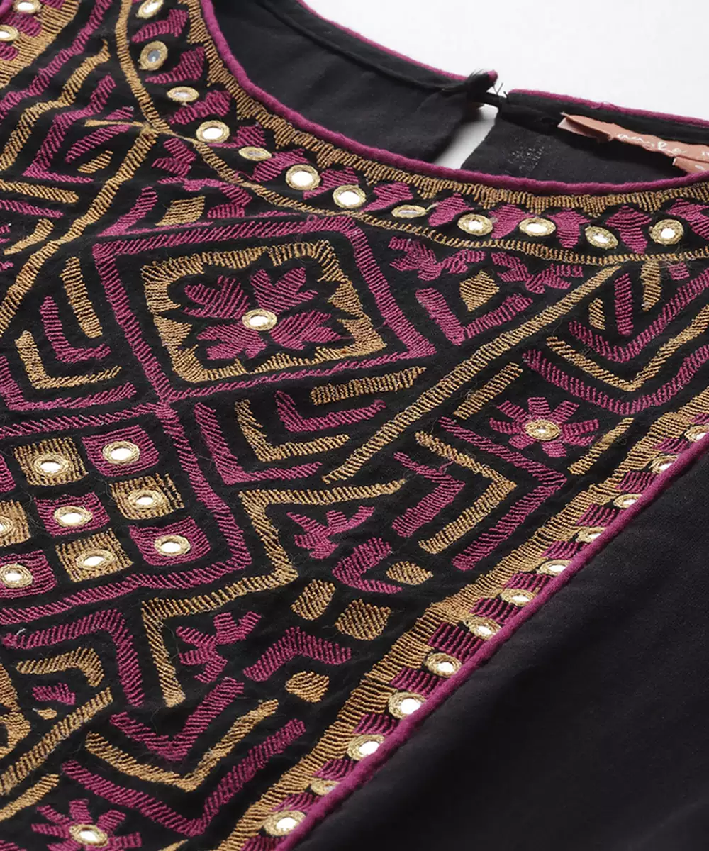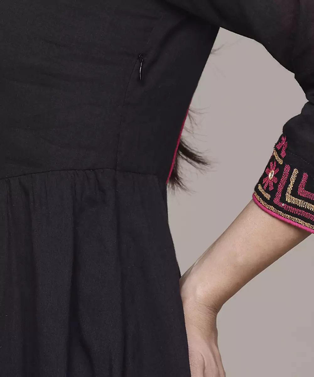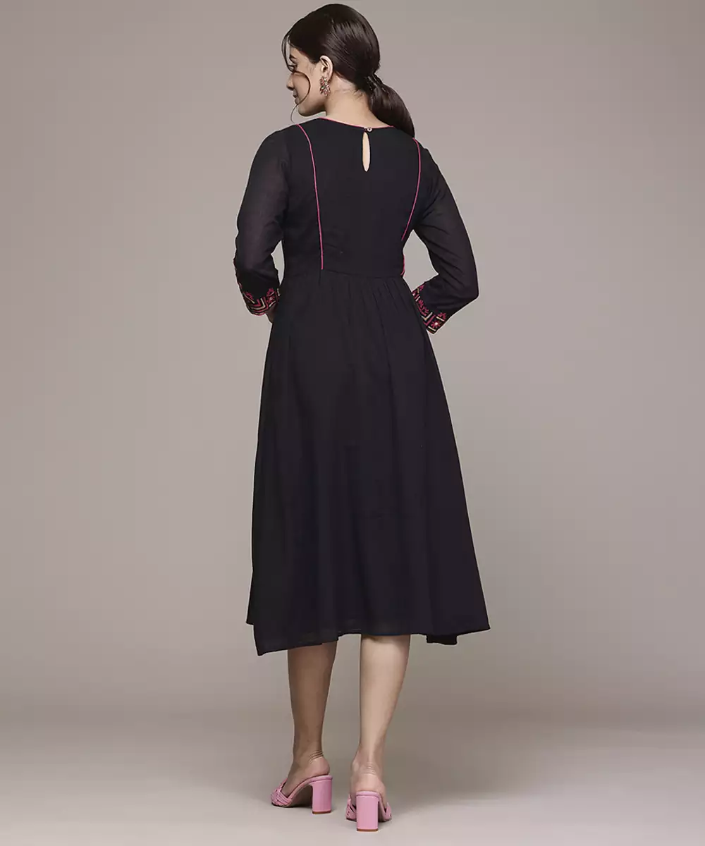 Black Cotton Dress With Embroidered Work Design