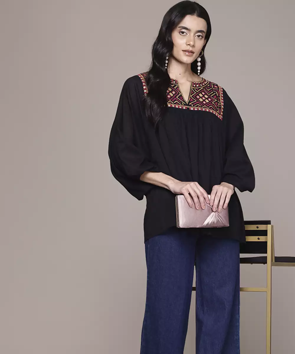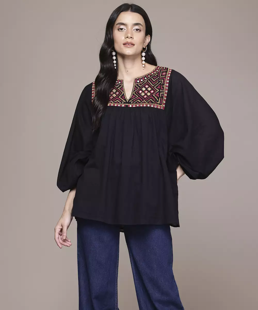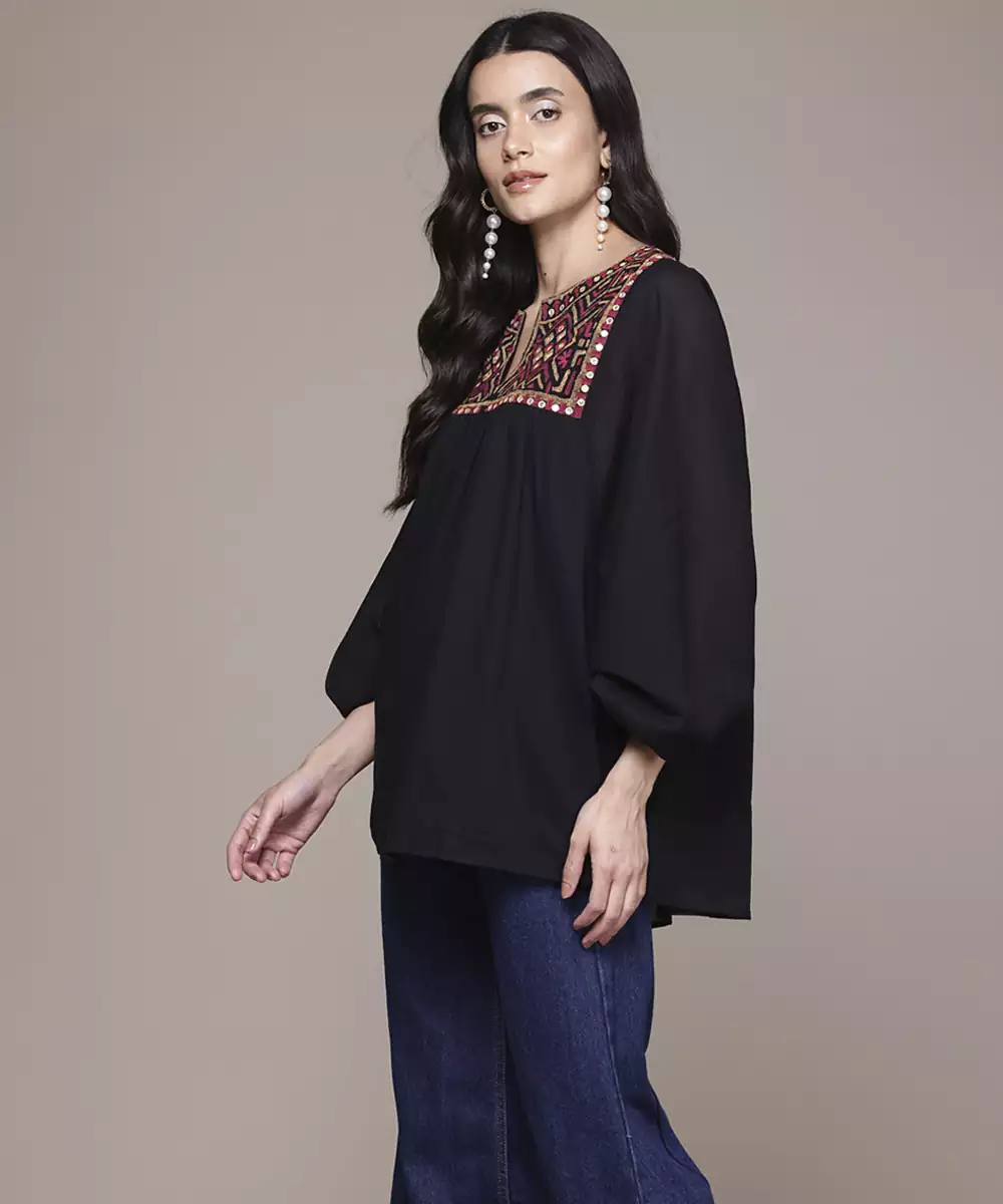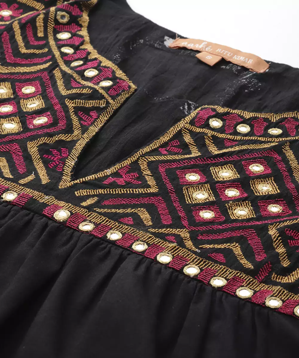 Black Cotton Top With Embroidered Work Design