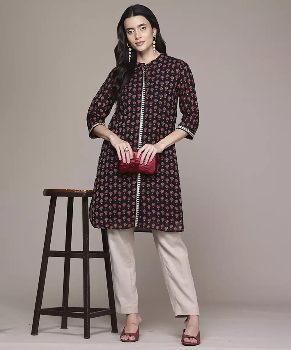 Embrace Timeless Elegance With This Black Woven Cotton Kurta. Crafted From Breathable, Skin Friendly Fabric, It Ensures All Day Comfort And Effortless Style. Perfect For Festive Events Or Casual Gatherings, Its Subtle Texture And Classic Design Offer A Refined Traditional Look With A Relaxed, Contemporary Feel. Easy To Wear And Maintain.